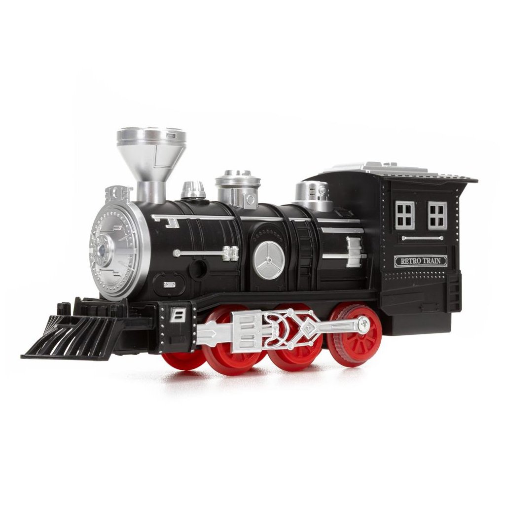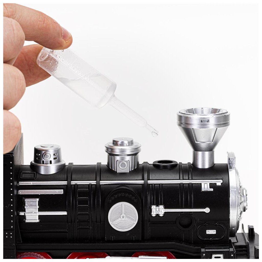Detský vláčik s vagónmi, hmlou a zvukmi – parná lokomotíva s koľajnicami KG0053