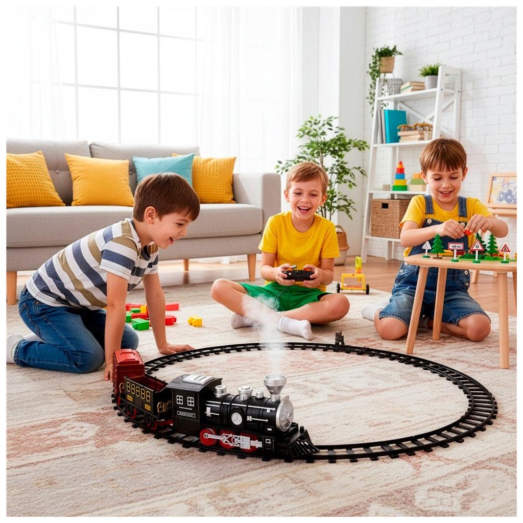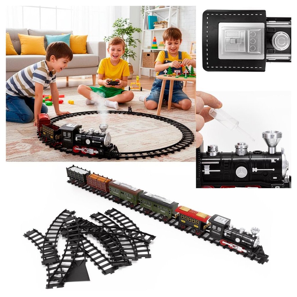 Objavte kúzlo tradičného parného vlaku v modernej podobe! Tento detský vláčik Springos® prináša deťom autentický železničný zážitok vďaka realistickým zvukom, efektu pary (hmly) a bohatej sade koľajníc a vagónov. Je to kreatívna a vzdelávacia hračka, ktorá stimuluje fantáziu, podporuje logické myslenie a rozvíja manuálne zručnosti.