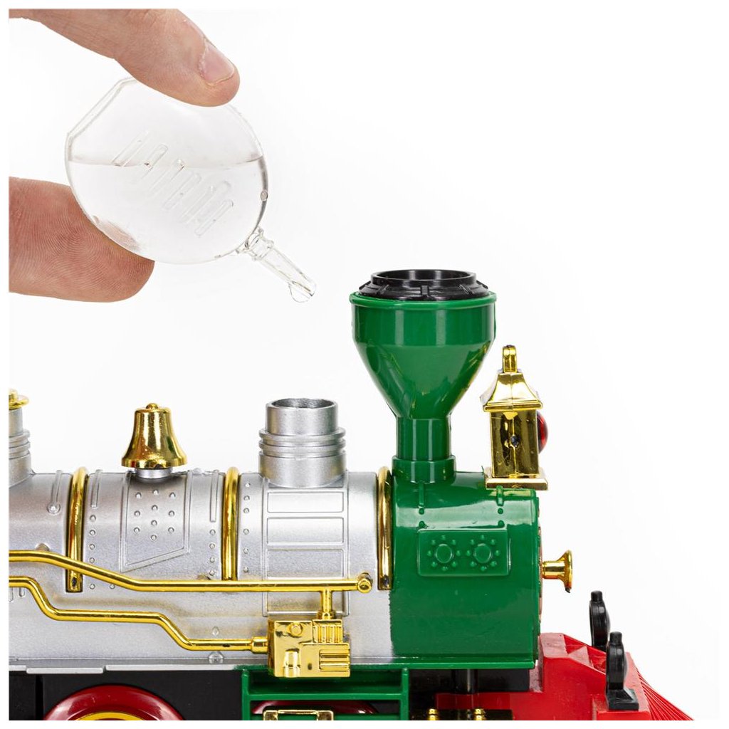 Efekt pary (hmly) napodobňuje skutočný parný vlak.