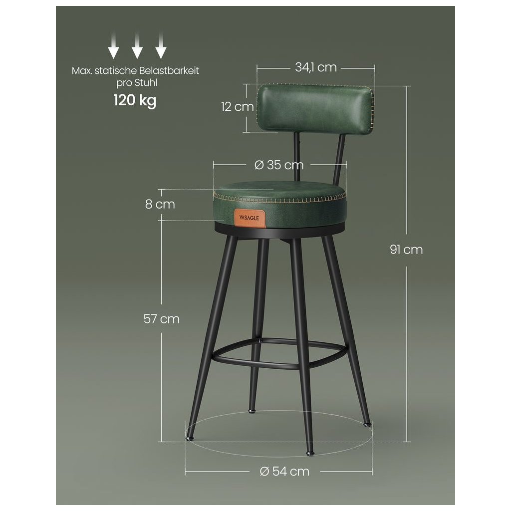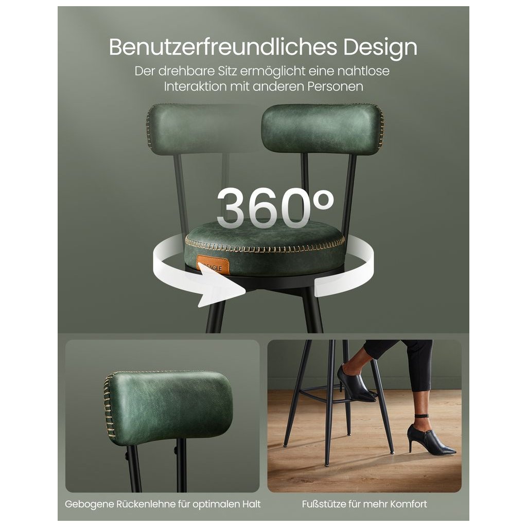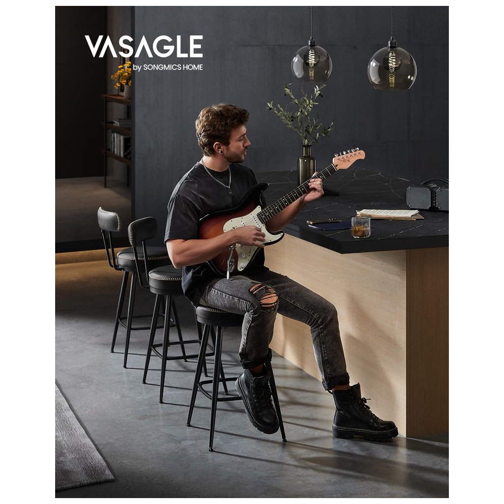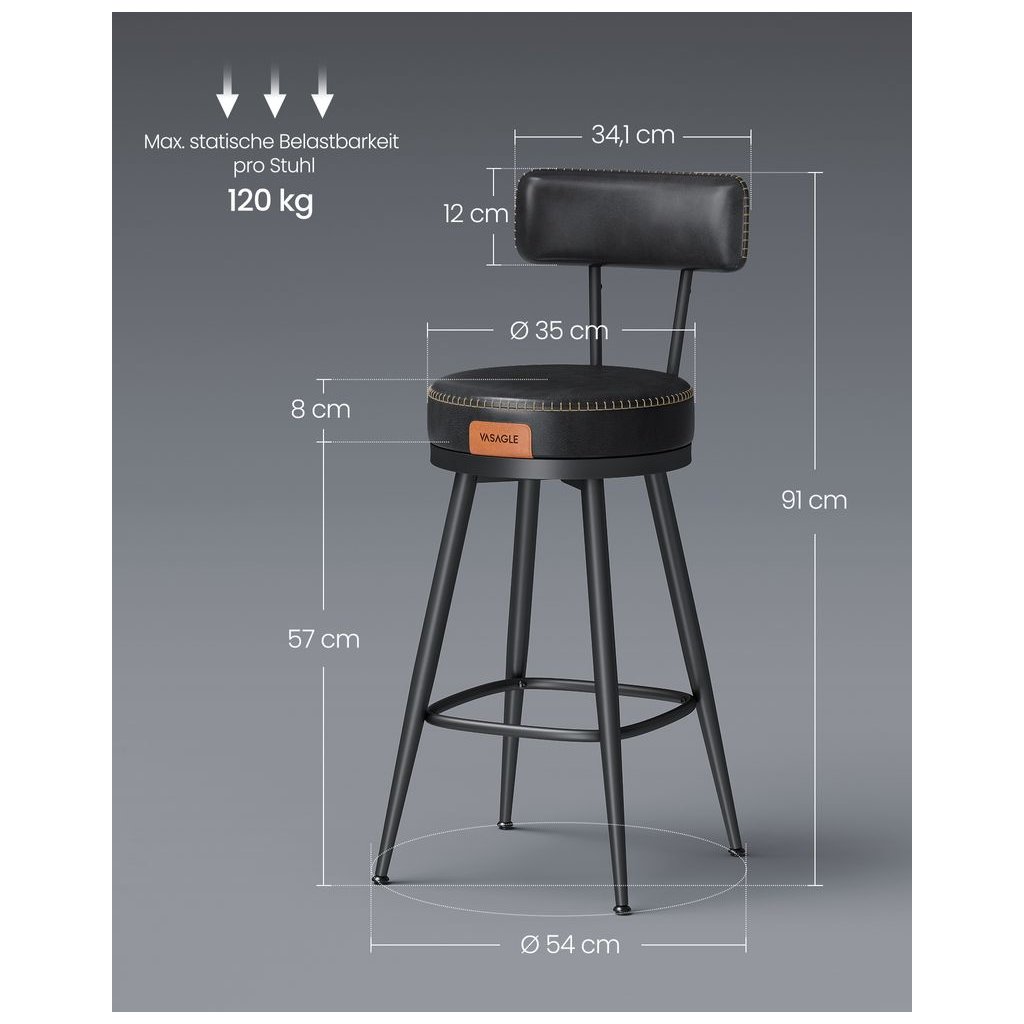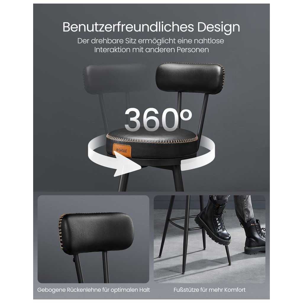 VASAGLE EKHO – Sada 2 barových stoličiek z umelej kože, otočné, LBC889