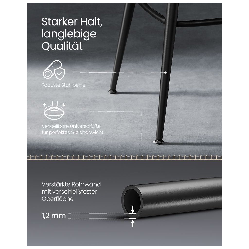 Dodajte svojmu domovu nádych elegancie so sadou dvoch barových stoličiek VASAGLE EKHO. Spojenie jemného prešívania, luxusne pôsobiacej umelej kože a zužujúcich sa kovových nôh vytvára moderný, no zároveň nadčasový dizajn, ktorý dokonale doplní kuchynský ostrov, bar či spoločenský priestor.
