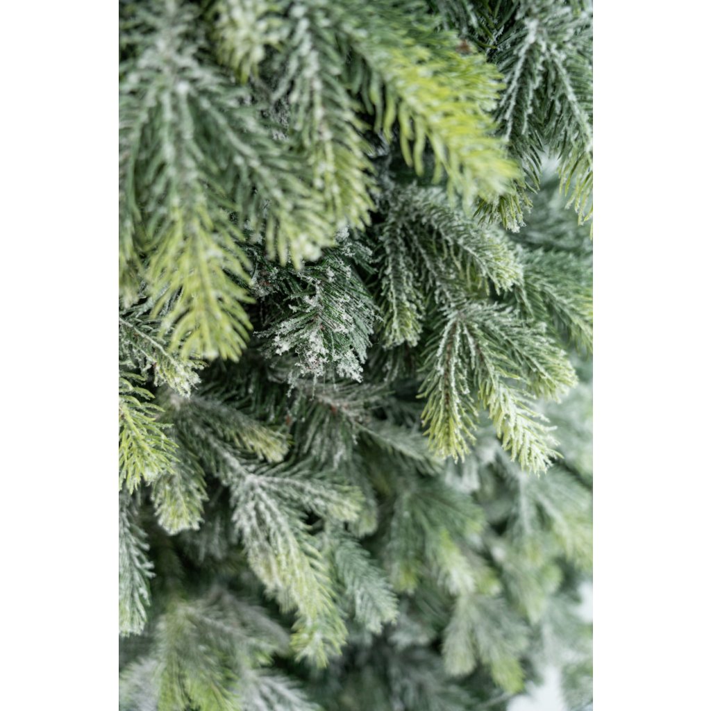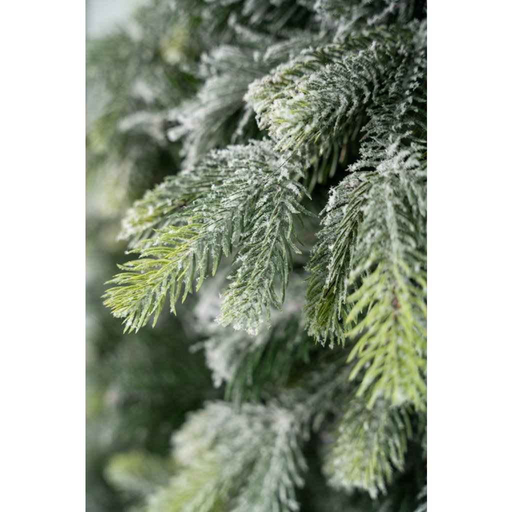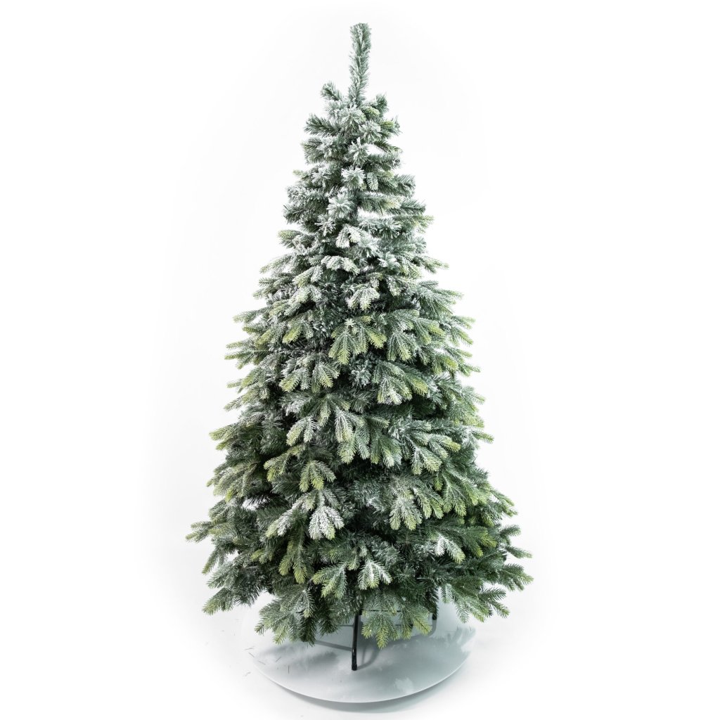 Realistický vianočný stromček s jemným umelým snehom, vyrobený zo zmesi PVC a PE vetvičiek. PE vetvičky sú zošité niťou a umiestnené na vonkajšej strane stromčeka, vytvárajú prirodzený vzhľad ihličia. PVC vetvičky tvoria vnútornú výplň. Konáre sú trvalo pripevnené k hlavnému kmeňu a je možné ich tvarovať podľa vlastného uváženia.