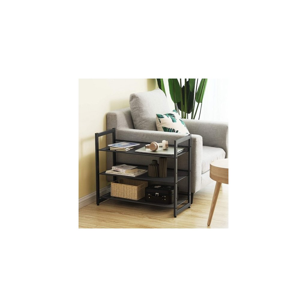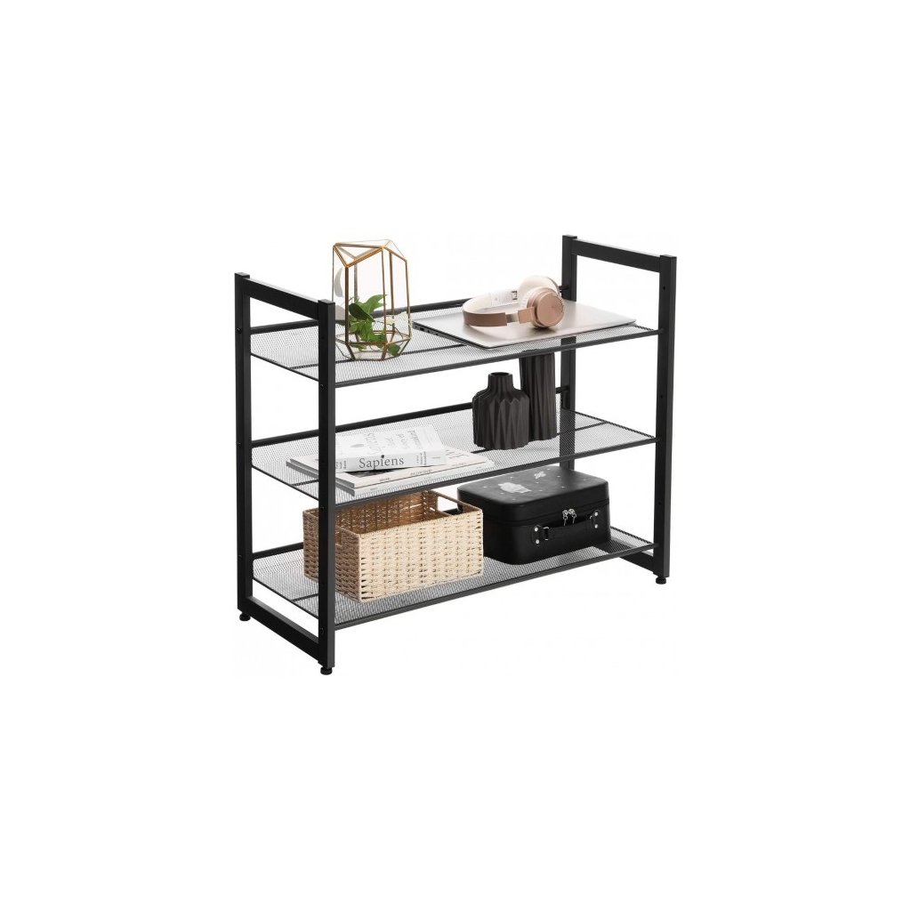 Tento 3-stupňový kovový stojan na topánky predstavuje jednoduchý a čistý dizajn práškovej ocele. Husté kovové sieťové police podporujú až 12 dámskych topánok alebo 9 pánskych topánok; tento stojan sa môže pochváliť dostatkom organizovaného úložiska pre vaše štýlové lodičky, topánky a tenisky, pretože, priznajme si to, väčšina z nás má viac ako jeden pár. Môžete si kúpiť niekoľko stojanov na topánky a zložiť ich do vyššieho; jediná vec, ktorú si musíte pamätať, je pre vyššiu bezpečnosť nainštalovať remene proti prevráteniu na vysoký stojan.