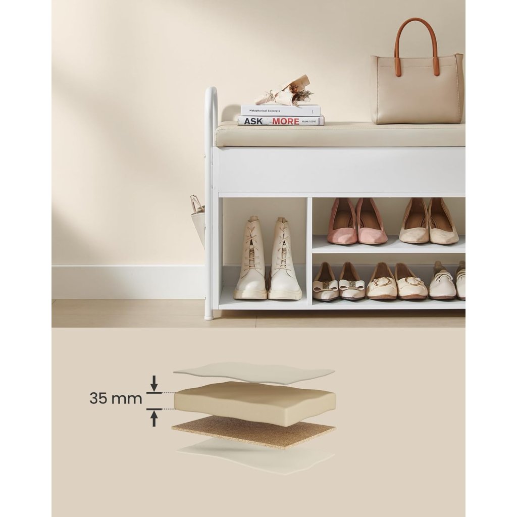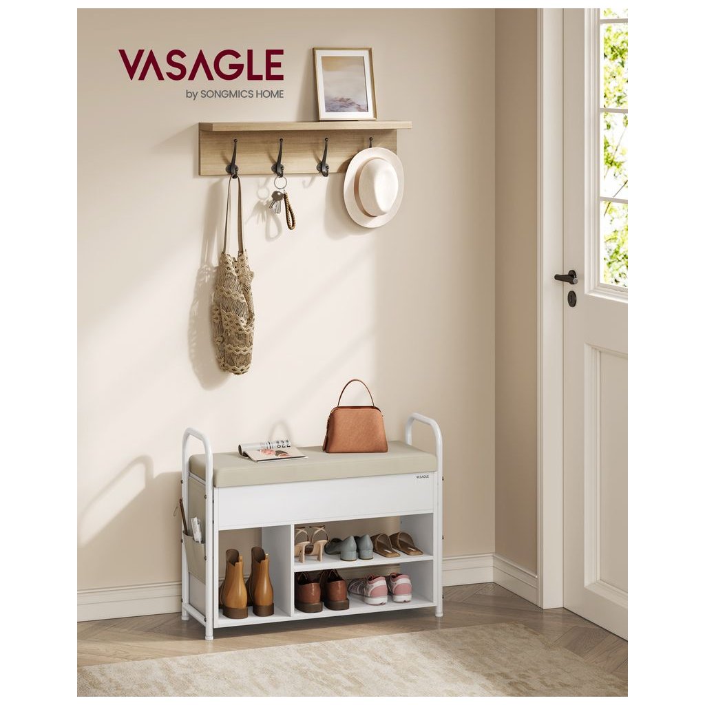 VASAGLE LSB052W01 botník s čalúnenou lavicou a úložným priestorom