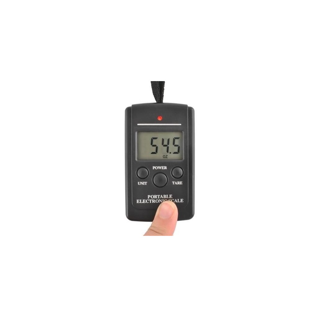 Elektronická váha s háčikom je perfektná na batožinu ale i na rybolov. Je malá a ľahká, takže si ju môžete ľahko vložiť do vrecka alebo kabelky. Dióda informuje o prevádzke zariadenia a blikaním indikuje nízky stav batérie. Maximálne zaťaženie váhy je 40 kg (meria s presnosťou 10 g). Podsvietená obrazovka uľahčuje čítanie výsledku aj v noci. Funkcia pamätania výsledku umožňuje posledné čítanie aj po vybratí batožiny. Túto funkciu môžete vypnúť podržaním tlačidla TARE. Váha sa sama vypne. Váhu je možné pri vážení zavesiť na háčik, vešiak, vetvu alebo držať v ruke - uľahčuje to priložená šnúrka.