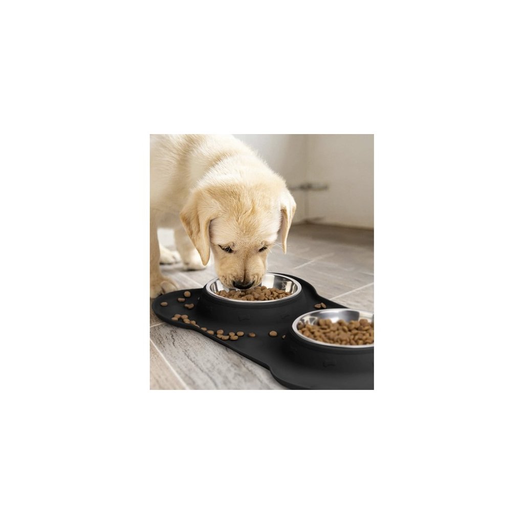 Praktická súprava, v ktorej nie je jedna miska pre psíka, ale dve, takže si môžete dať krmivo pre vášho miláčika aj naliať čerstvú vodu. Stojan je silikónový, čo znamená, že sa miska nehýbe. Okrem toho sa jedlo nevyleje a voda sa neleje priamo na podlahu, ale do stojana.