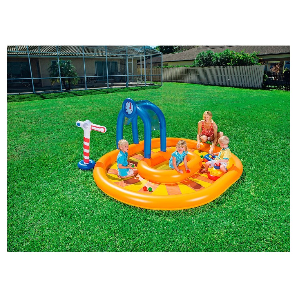 Rozžiaria sa oči každého dieťaťa! Nafukovacie detské ihrisko Bestway vláčik je ideálnym miestom na letné šantenie a vodné hry. Farebný dizajn s lokomotívou, semaforom a loptičkami zaručí hodiny zábavy, zatiaľ čo rodičia ocenia jednoduché nafúknutie a bezpečný materiál.