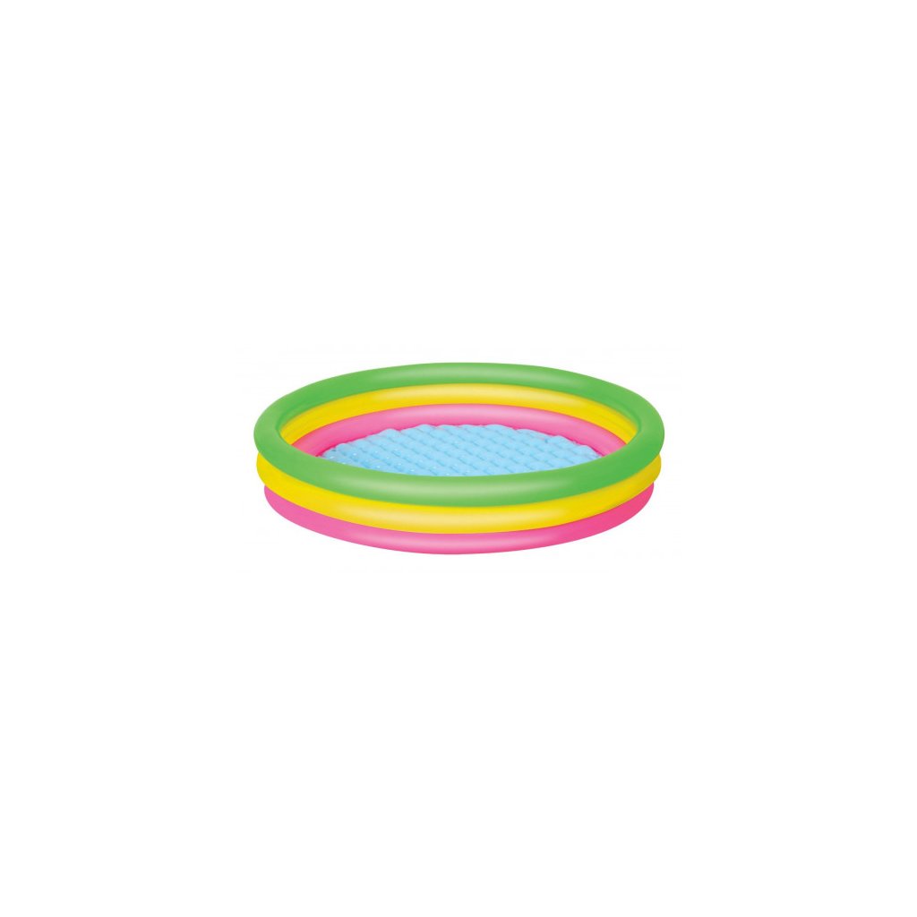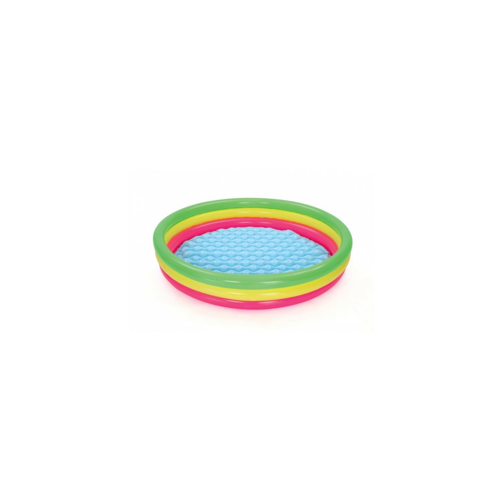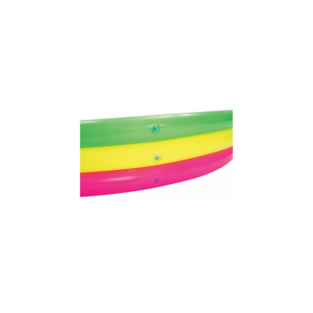 Nafukovací bazén s priemerom 152 cm a výškou 30 cm má až 3 krúžky v neónových dúhových farbách. Deti budú milovať prázdninové farby a nafukovacie mäkké dno im poskytne pohodlie pri používaní. Vďaka použitiu odolného vinylu a použitiu bezpečnostných ventilov je bazén odolný voči poškodeniu a zaručuje úspešnú zábavu na dlhú dobu.