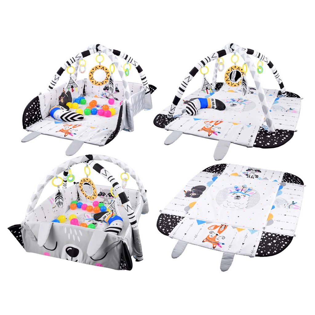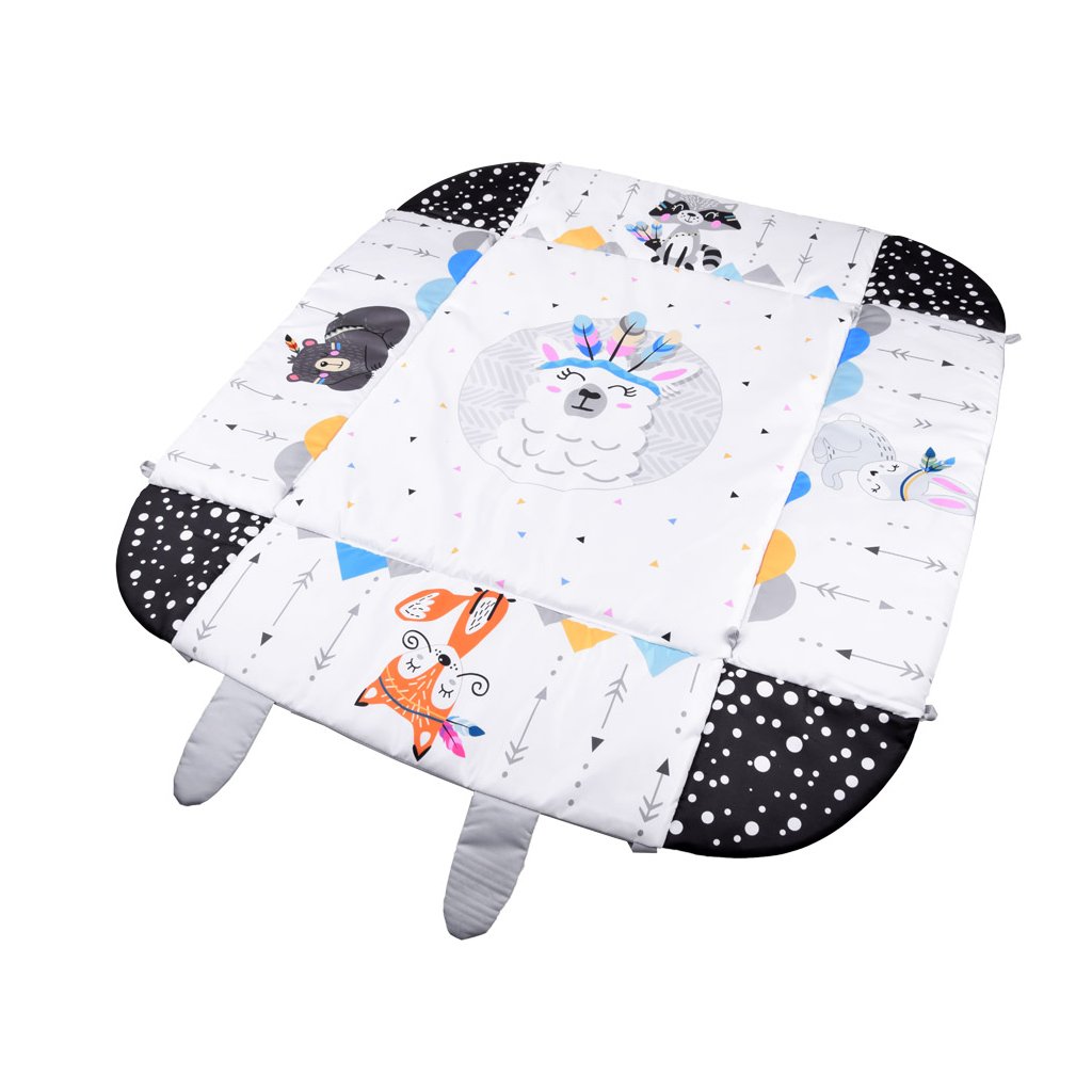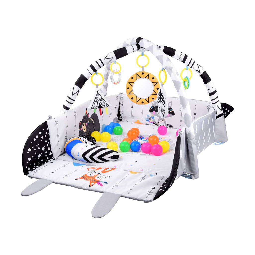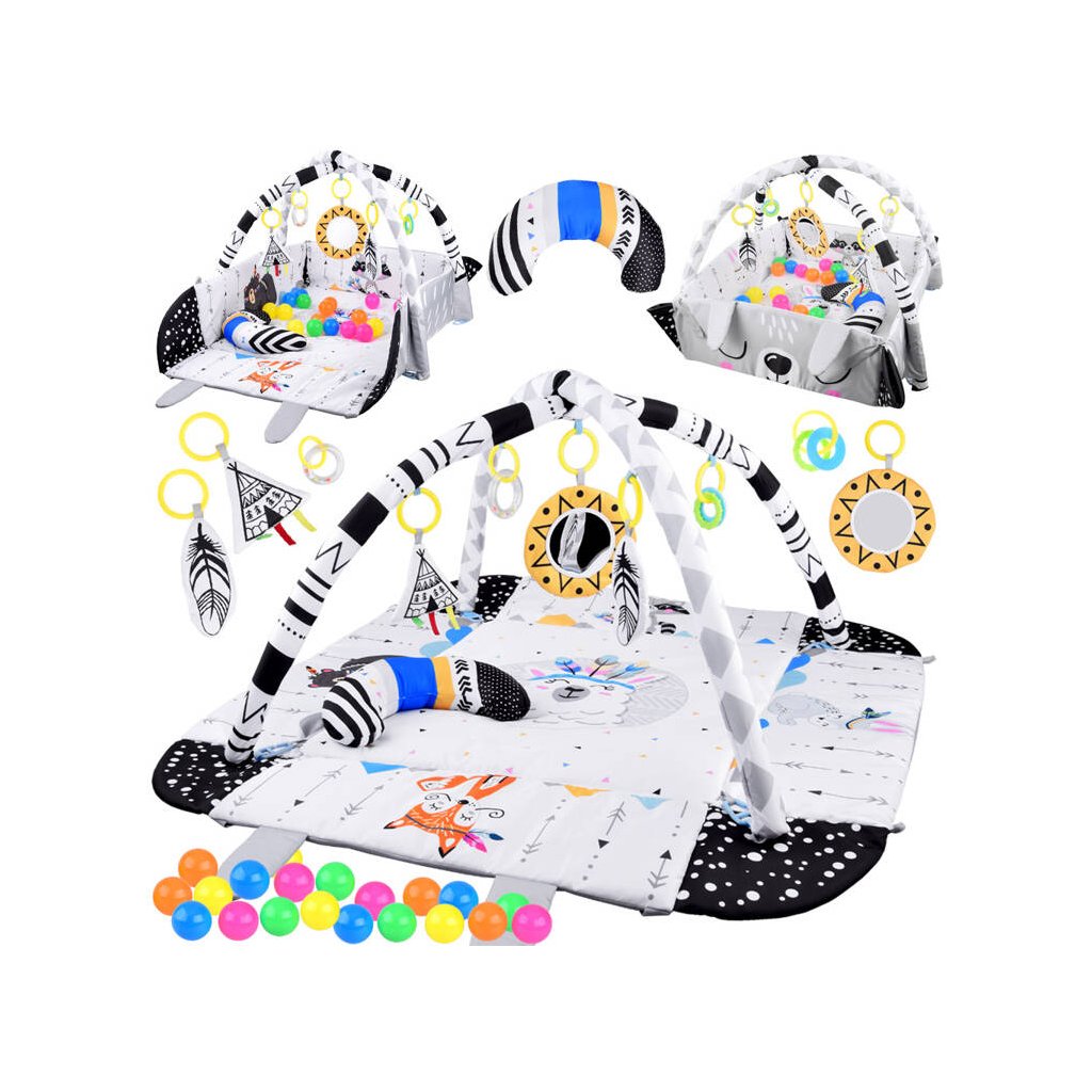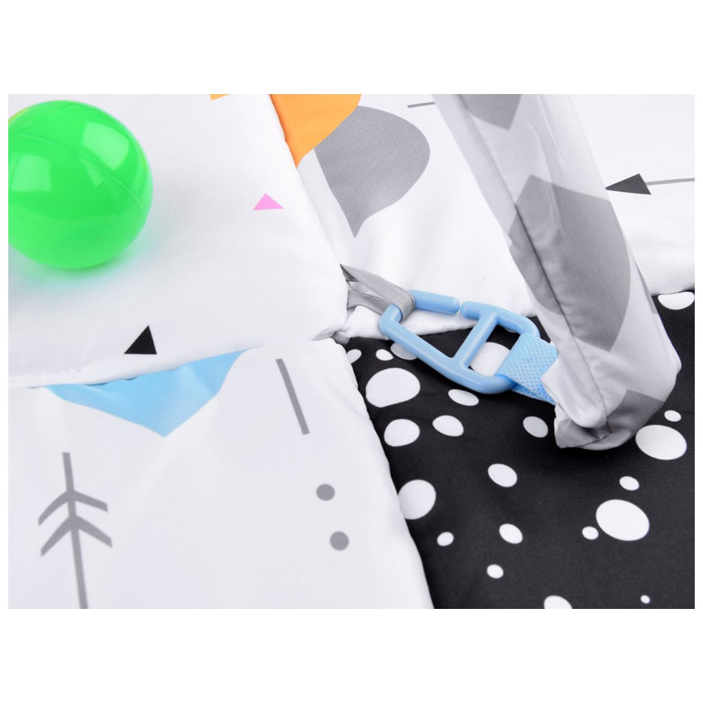 - 4 možnosti využitia: Obojstranná podložka, herná plocha s hračkami, bazénik na loptičky, alebo relaxačná podložka.