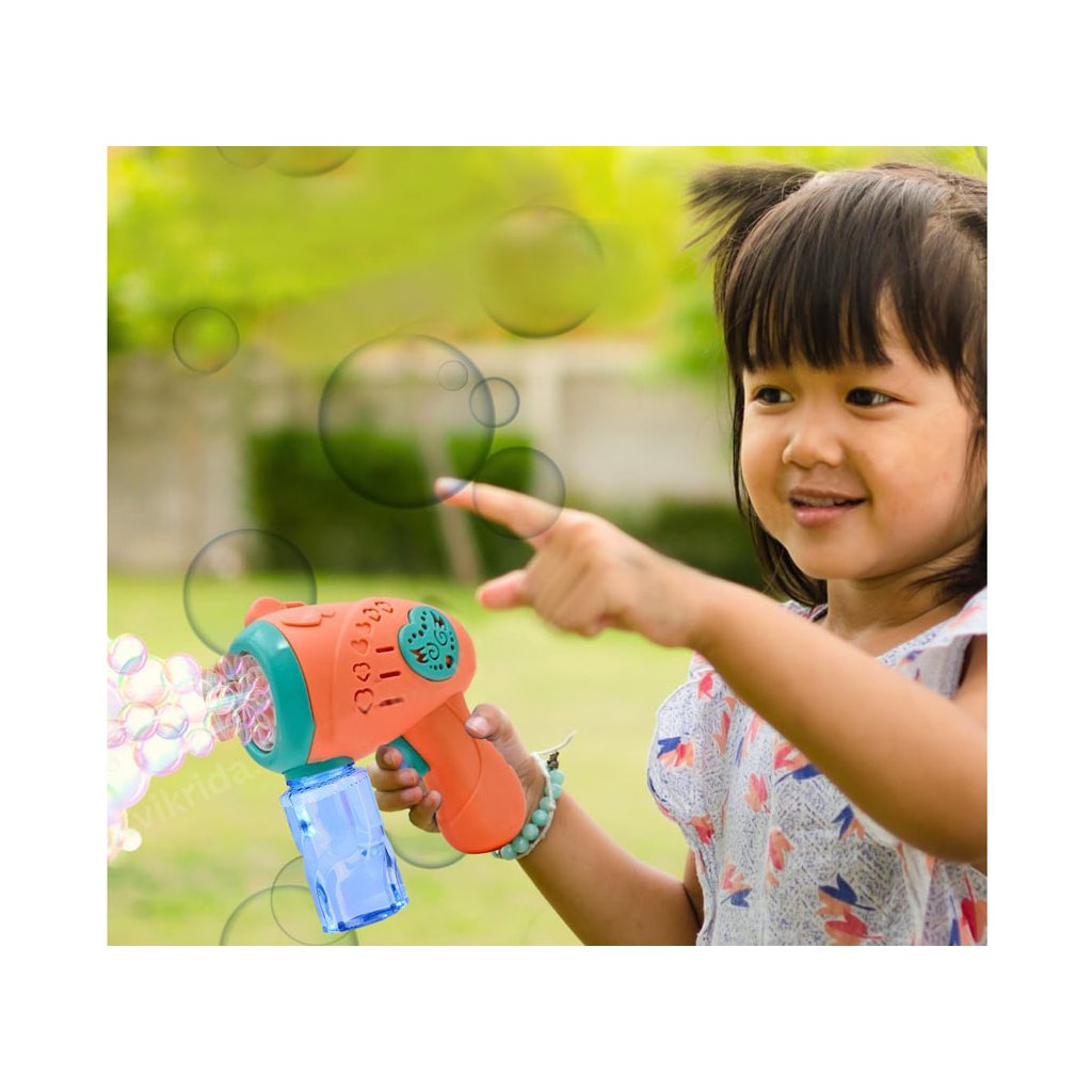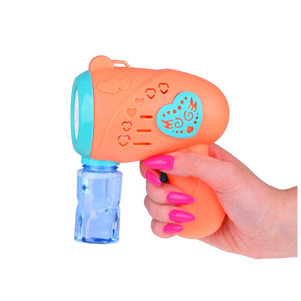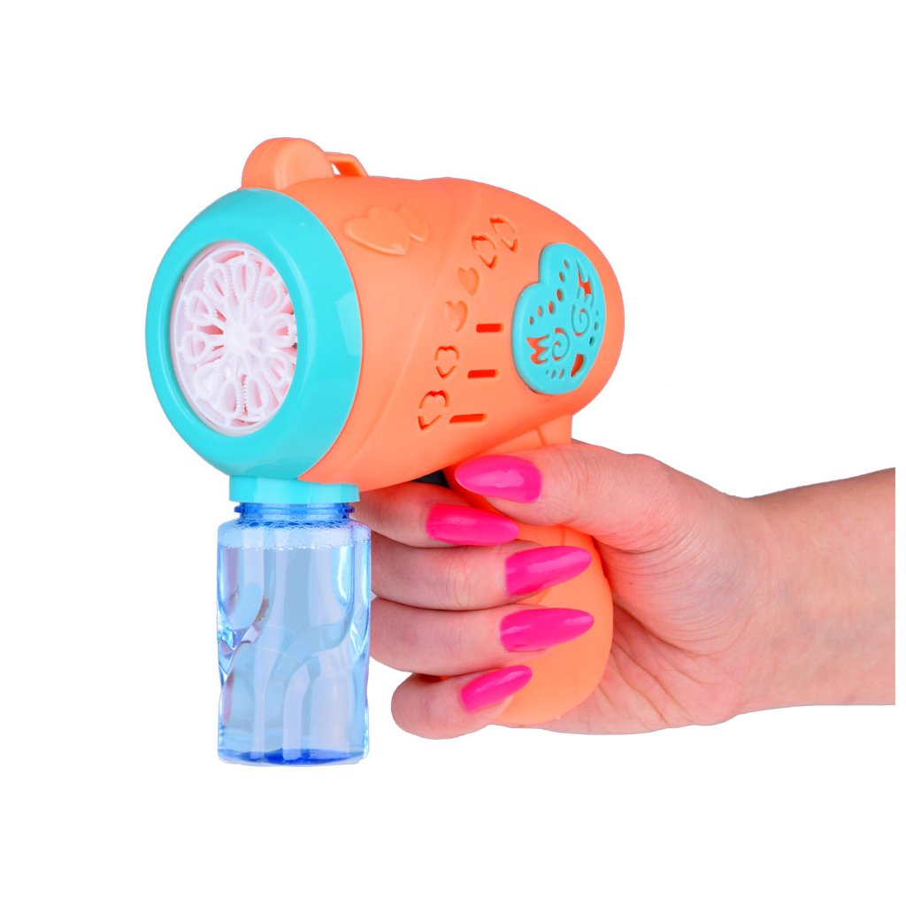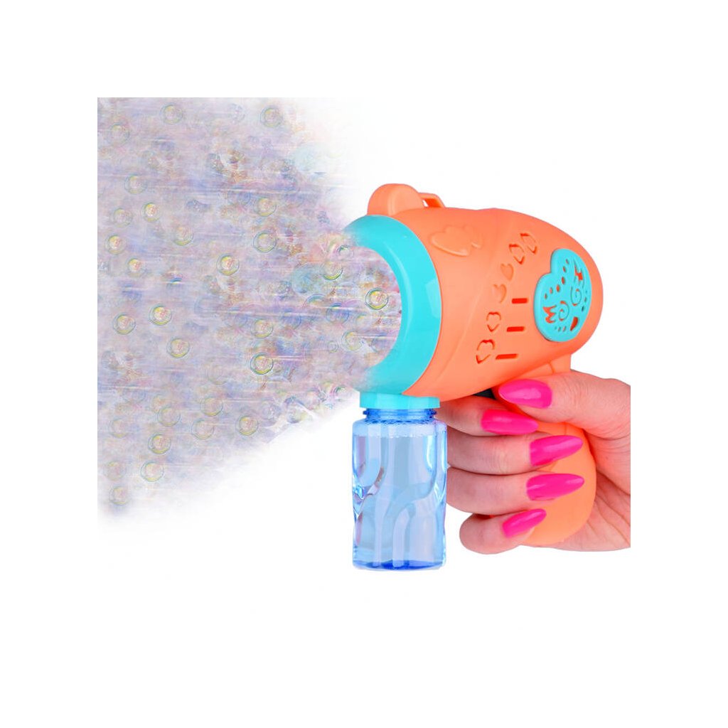 Bublinková pištoľ je hračka, ktorá umožňuje našim najmenším zabávať sa vonku. Je vyrobená z odolného plastu, v krásnych, žiarivých, dovolenkových farbách. Stačí naskrutkovať pribalenú fľaštičku s tekutinou, stlačiť tlačidlo a farebná zábava sa začne a po okolí sa rozptýlia rôznofarebné bublinky v rôznych veľkostiach. Hra s bublinkovou pištoľou môže trvať večne. Jednoduché nalievanie tekutiny do nádrže, trvá to len niekoľko okamihov. Skvelý spôsob, ako pridať ďalšiu atrakciu počas večierkov, piknikov alebo prechádzok za krásneho slnečného počasia.