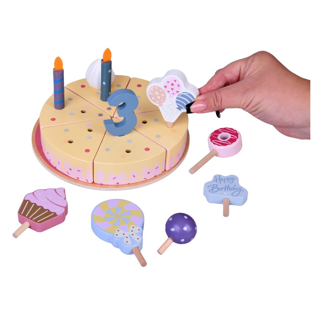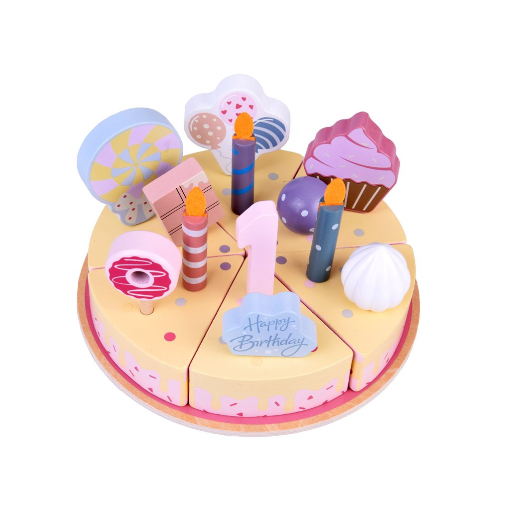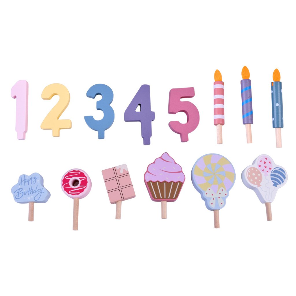 Táto farebná drevená narodeninová torta je perfektnou sadou pre kreatívnu zábavu na narodeninovej oslave! Torta je vyrobená z vysoko kvalitného, hladko brúseného dreva, vyzerá neuveriteľne lákavo a poteší pastelovými farbami. Každý kúsok torty sa dá vďaka vstavanému suchému zipsu odrezať a znova pripevniť, vďaka čomu je hra realistická a pútavá.