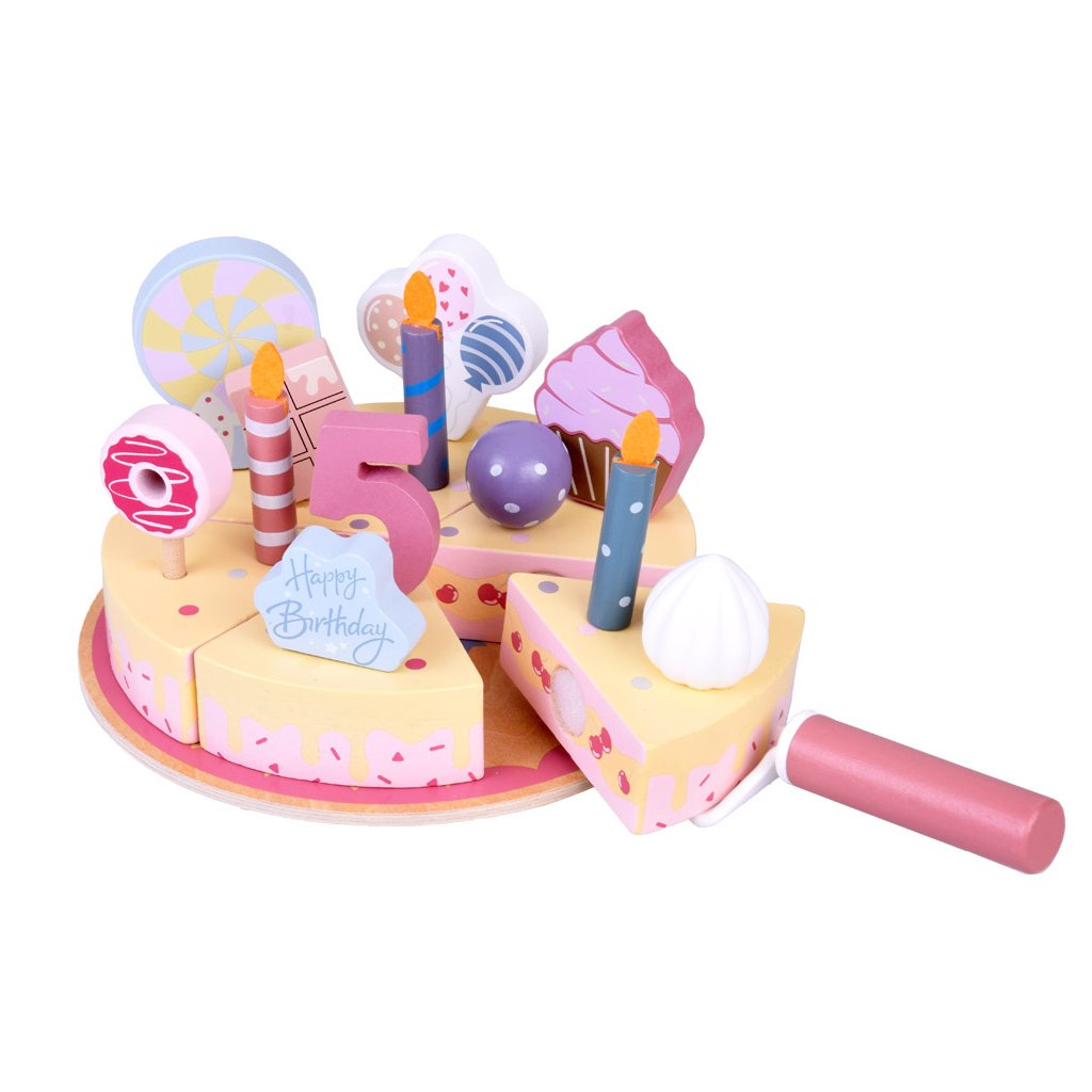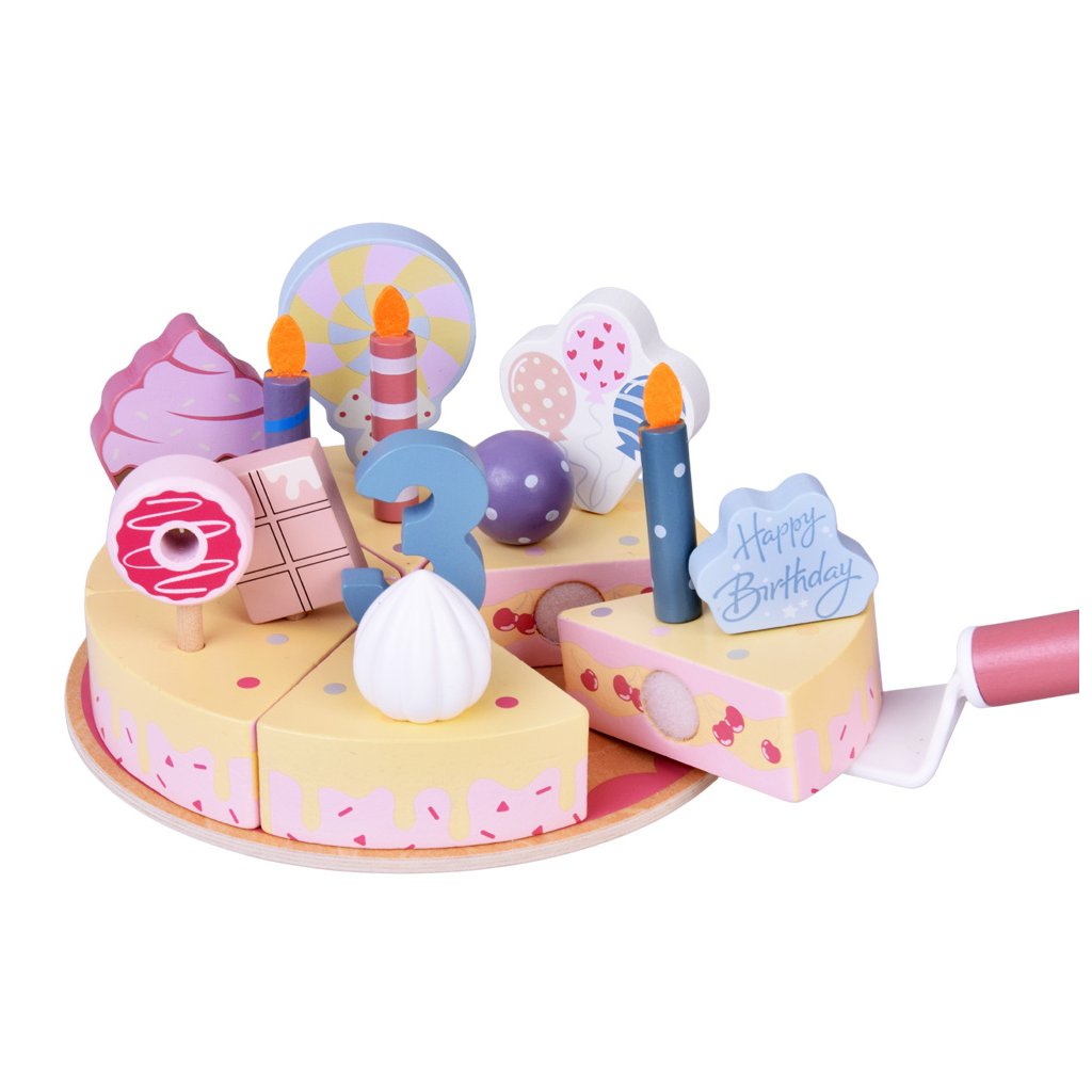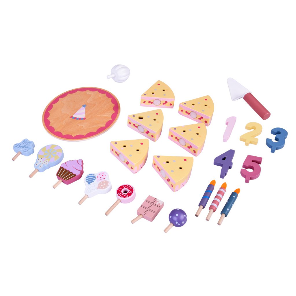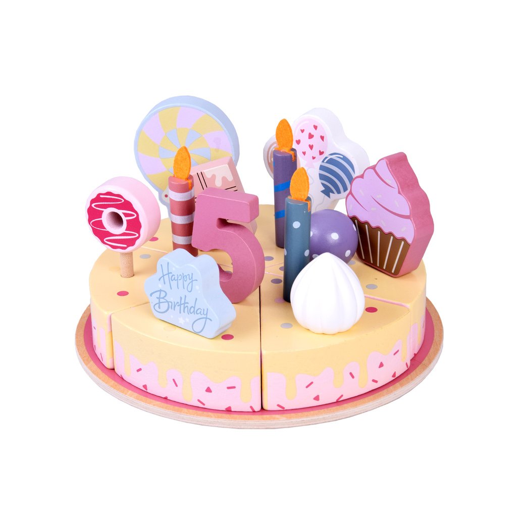 Táto farebná drevená narodeninová torta je perfektnou sadou pre kreatívnu zábavu na narodeninovej oslave! Torta je vyrobená z vysoko kvalitného, hladko brúseného dreva, vyzerá neuveriteľne lákavo a poteší pastelovými farbami. Každý kúsok torty sa dá vďaka vstavanému suchému zipsu odrezať a znova pripevniť, vďaka čomu je hra realistická a pútavá.