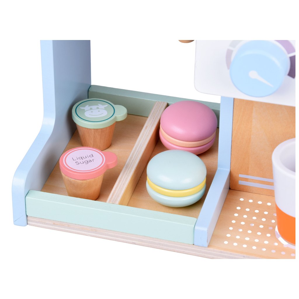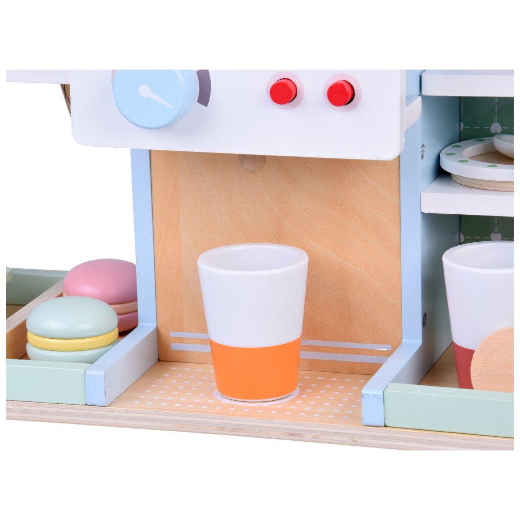 Vytvorte v detskej izbe jedinečnú atmosféru skutočnej kaviarne! Táto drevená kaviareň s espresso kávovarom je štýlová, odolná a detailne prepracovaná hračka, ktorá poteší každého mladého reštaurátora. Sada nielenže vyzerá krásne, ale ponúka aj množstvo funkcií, vďaka ktorým je hra neuveriteľne realistická a pútavá.