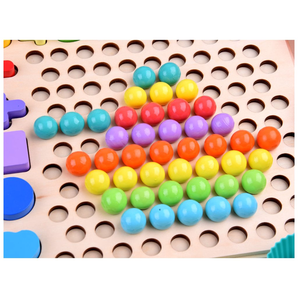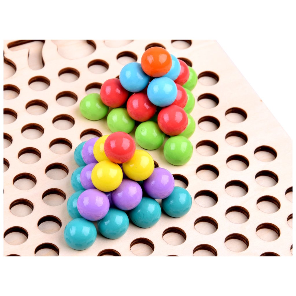 Zábavná a kreatívna hra – skladanie obrázkov s farebnými korálkami a trojrozmernými tvarmi stimuluje kreativitu.