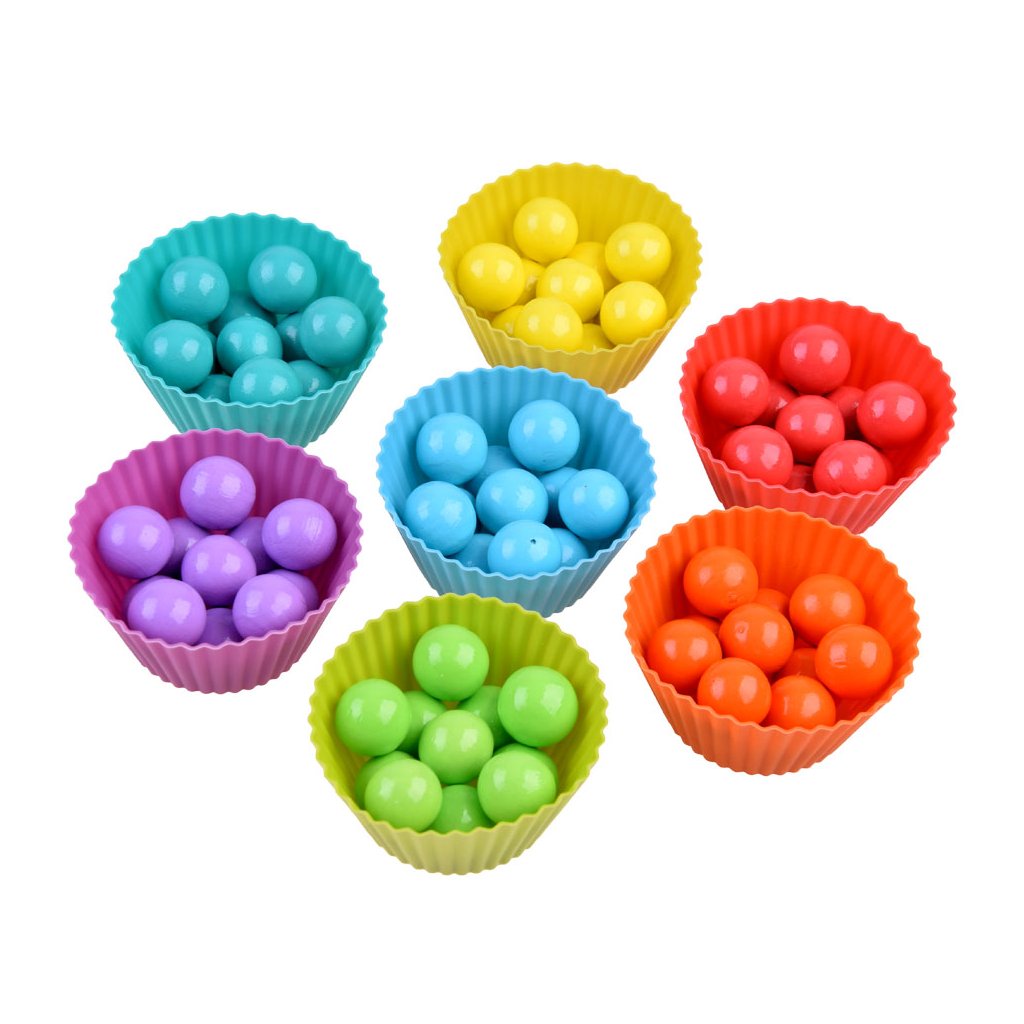 Tréning jemnej motoriky – manipulácia s drevenými guľôčkami, kruhmi a rybičkami rozvíja koordináciu ruka–oko.