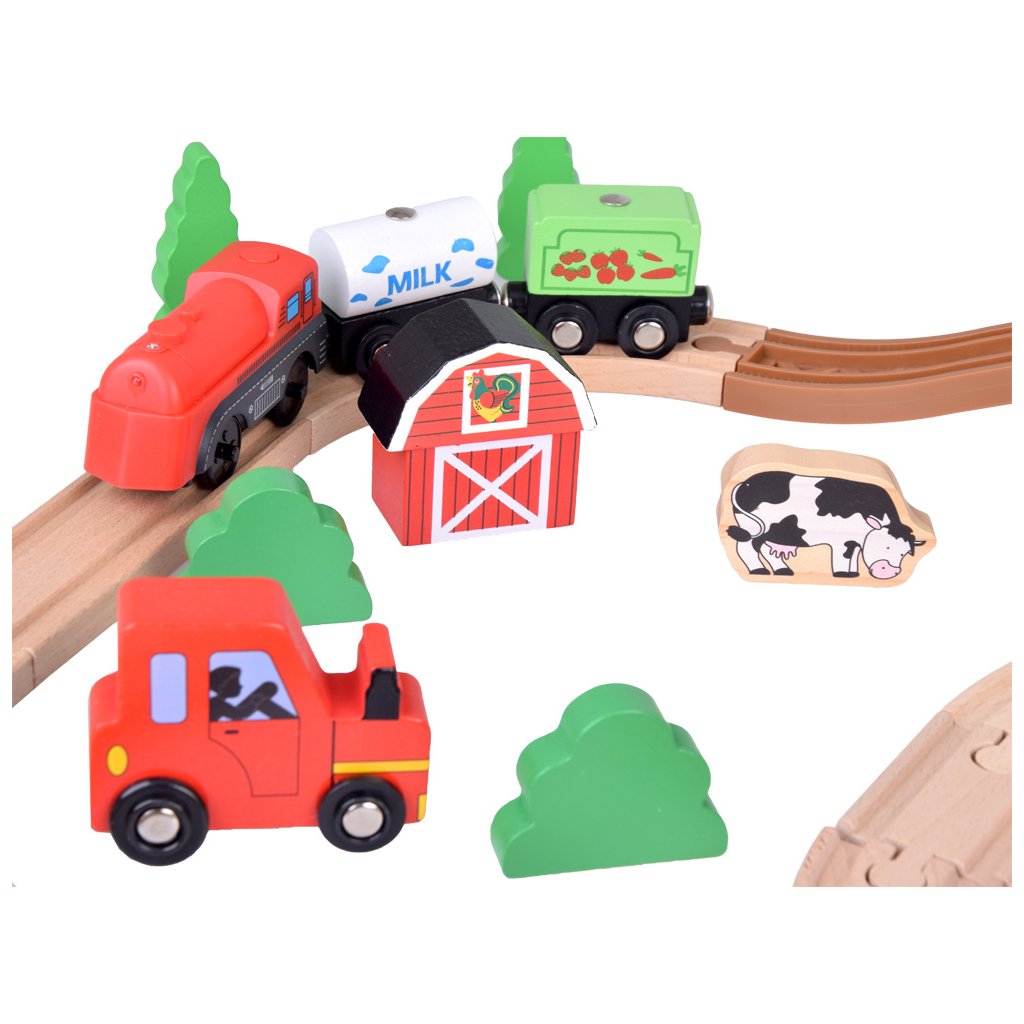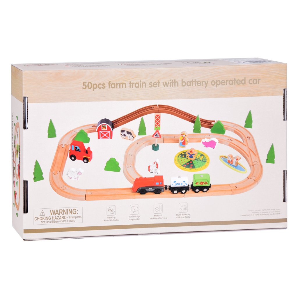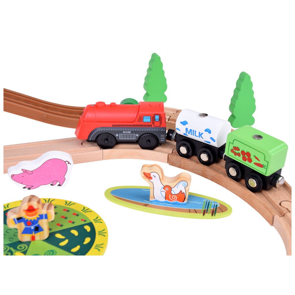 - Obsahuje koľajisko, lokomotívu a rôzne vozne, vrátane voza so zeleninou a cisterny na mlieko.