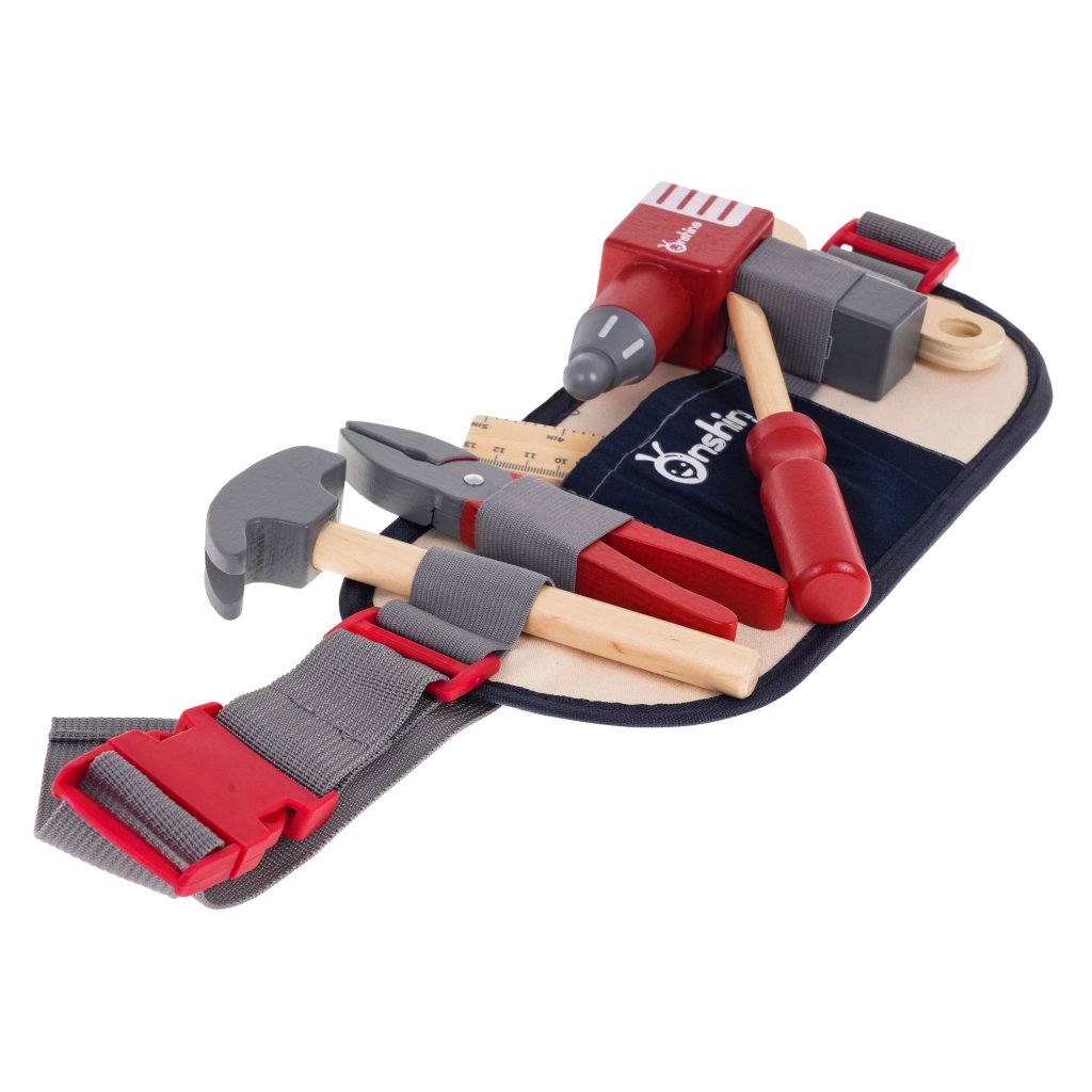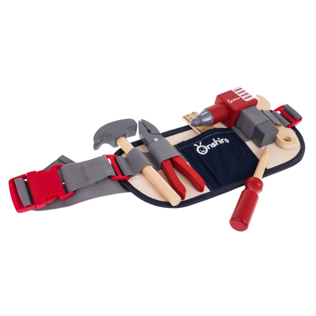 Sada náradia s opaskom musí mať každý malý kutil už od 3 rokov. Nástroje ako kladivo, kliešte, skrutkovač, skrutkovač, zvinovací meter alebo vidlicový kľúč sú vyrobené z dreva, sú bezpečné a odolné a nemajú ostré hrany. Opasok na náradie je nastaviteľný a zapínaný na patentku, v strede má vrecko a 5 priehradiek, do ktorých možno umiestniť všetko príslušenstvo súpravy.