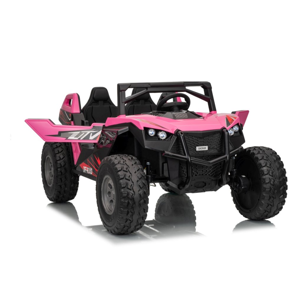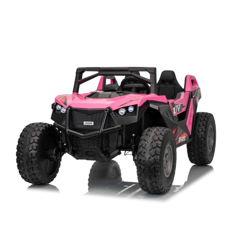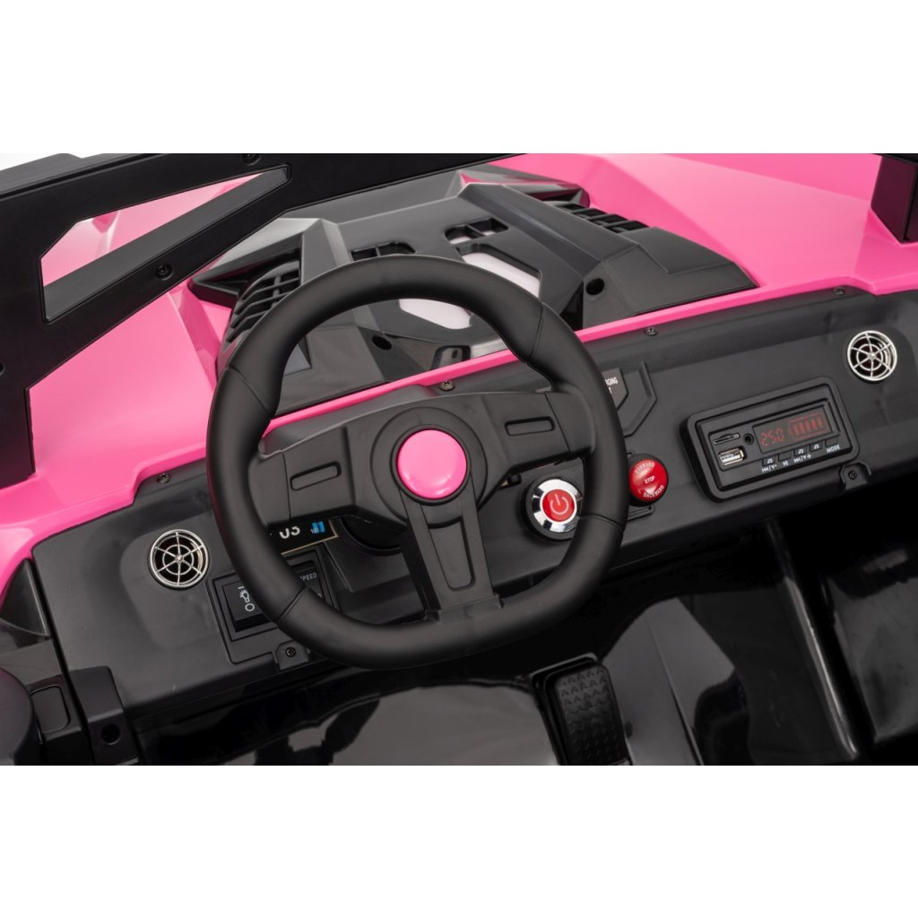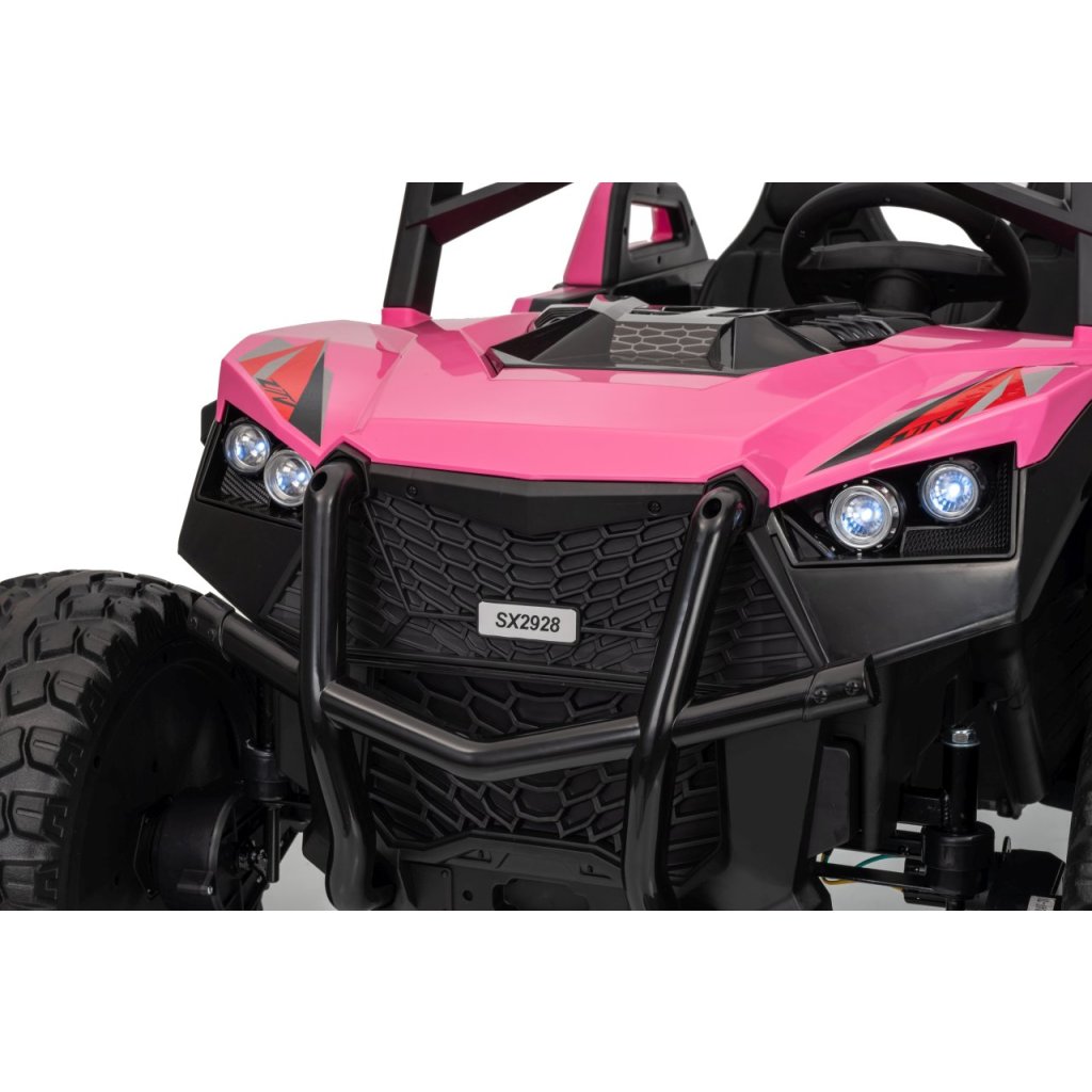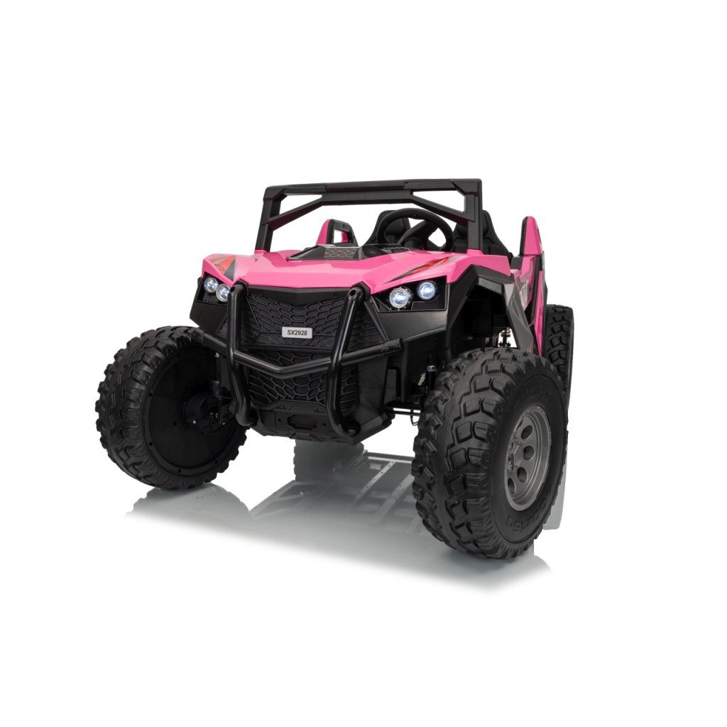 Elektrické Buggy RTR Monster Speed 4x4 v ružovej farbe je výkonný dvojmiestny pojazd pre deti, ktorý kombinuje vysoký výkon, odolnosť a moderný dizajn. Vďaka štyrom motorom (2×45 W vpredu a 2×300 W vzadu) a systému pohonu 4×4 si hravo poradí aj s náročným terénom.Tento model zo série 24 V ponúka plynulý rozjazd, LED osvetlenie, podsvietenú masku, realistické zvuky motora a bohaté multimediálne funkcie – od Bluetoothu až po FM rádio. Vetrané kožené sedadlo z ekokože a bezpečnostné pásy zaručujú komfort aj bezpečnosť pri jazde.