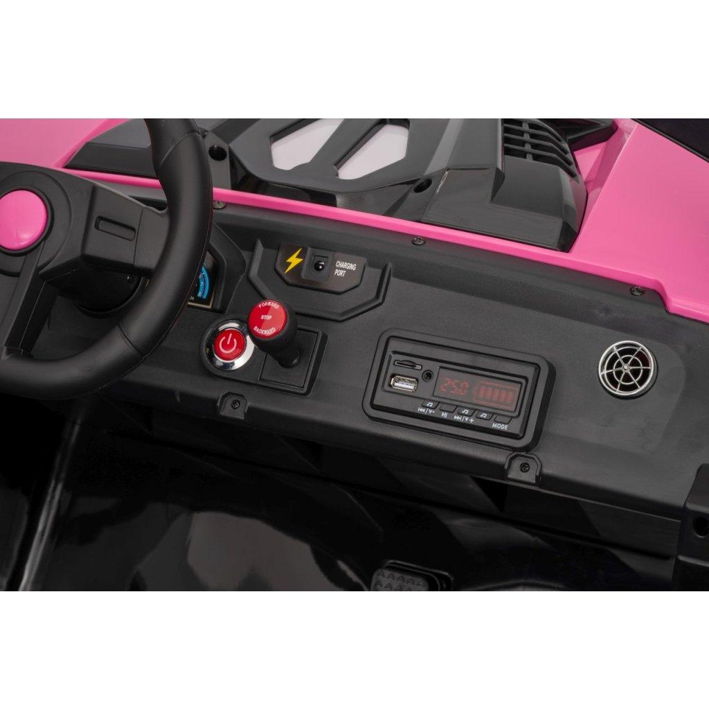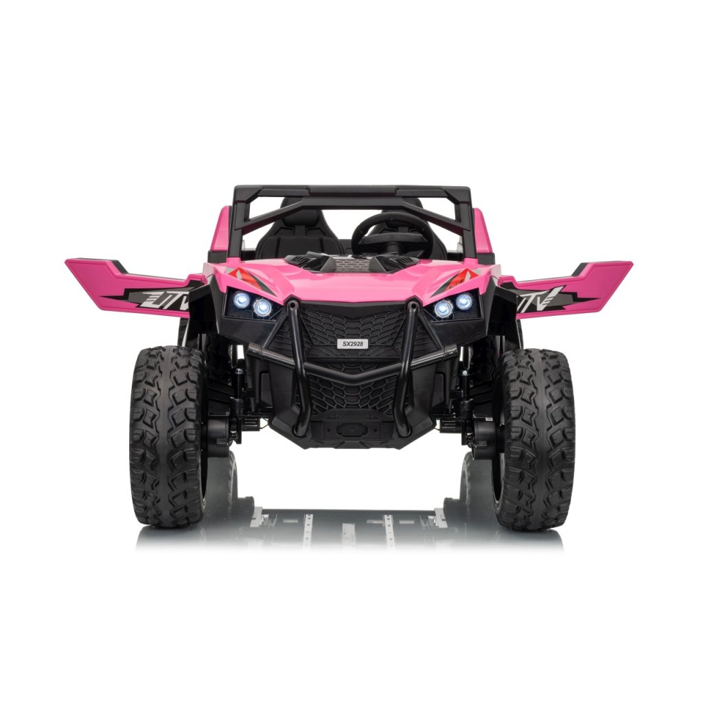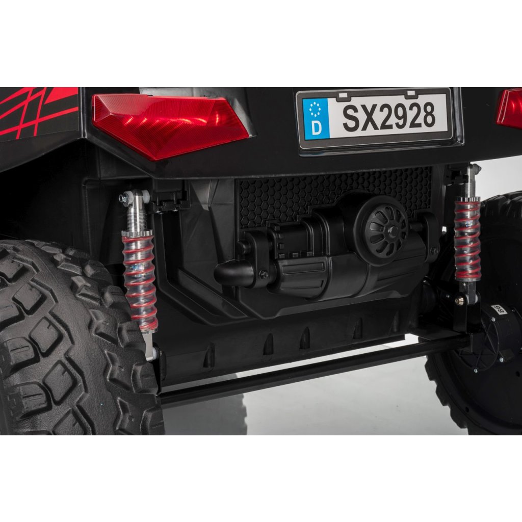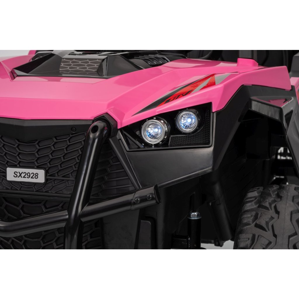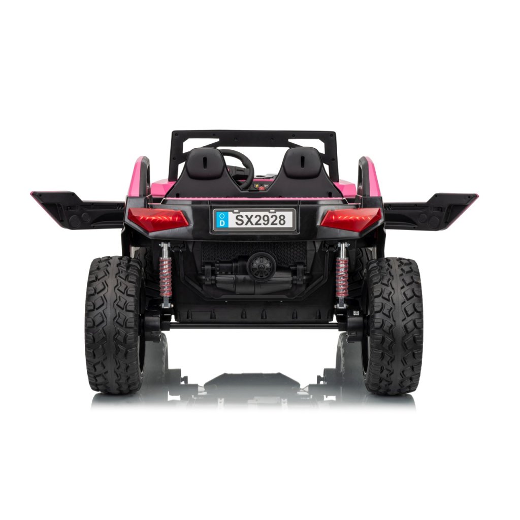 Elektrické Buggy RTR Monster Speed 4x4 v ružovej farbe je výkonný dvojmiestny pojazd pre deti, ktorý kombinuje vysoký výkon, odolnosť a moderný dizajn. Vďaka štyrom motorom (2×45 W vpredu a 2×300 W vzadu) a systému pohonu 4×4 si hravo poradí aj s náročným terénom.Tento model zo série 24 V ponúka plynulý rozjazd, LED osvetlenie, podsvietenú masku, realistické zvuky motora a bohaté multimediálne funkcie – od Bluetoothu až po FM rádio. Vetrané kožené sedadlo z ekokože a bezpečnostné pásy zaručujú komfort aj bezpečnosť pri jazde.