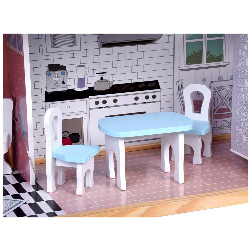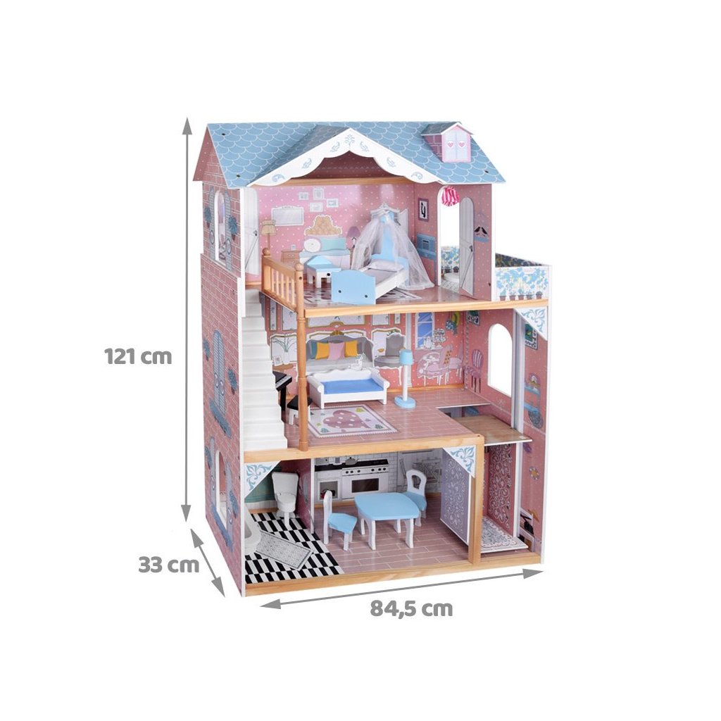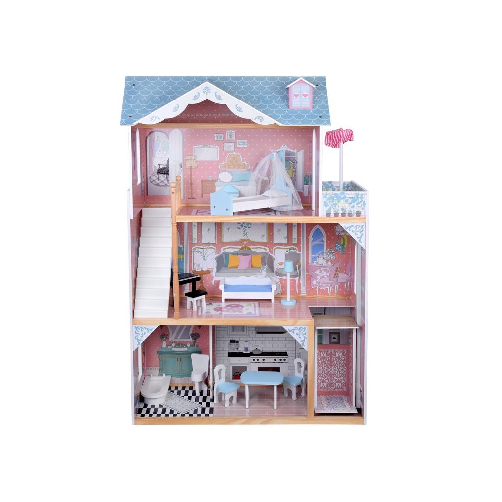 Tento veľký drevený domček pre bábiky s nábytkom sa stane nádherným centrom detskej izby a prinesie hodiny tvorivej hry. Je to darček, ktorý poteší nielen deti, ale aj rodičov vďaka kvalitnému spracovaniu a elegantnému dizajnu.