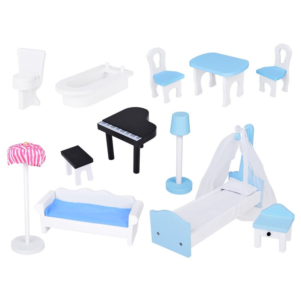 Súčasťou balenia je detailne spracovaný drevený nábytok, ktorý sa dá ľubovoľne premiestňovať a kombinovať. Deti si tak môžu zariadiť interiér podľa vlastných predstáv.