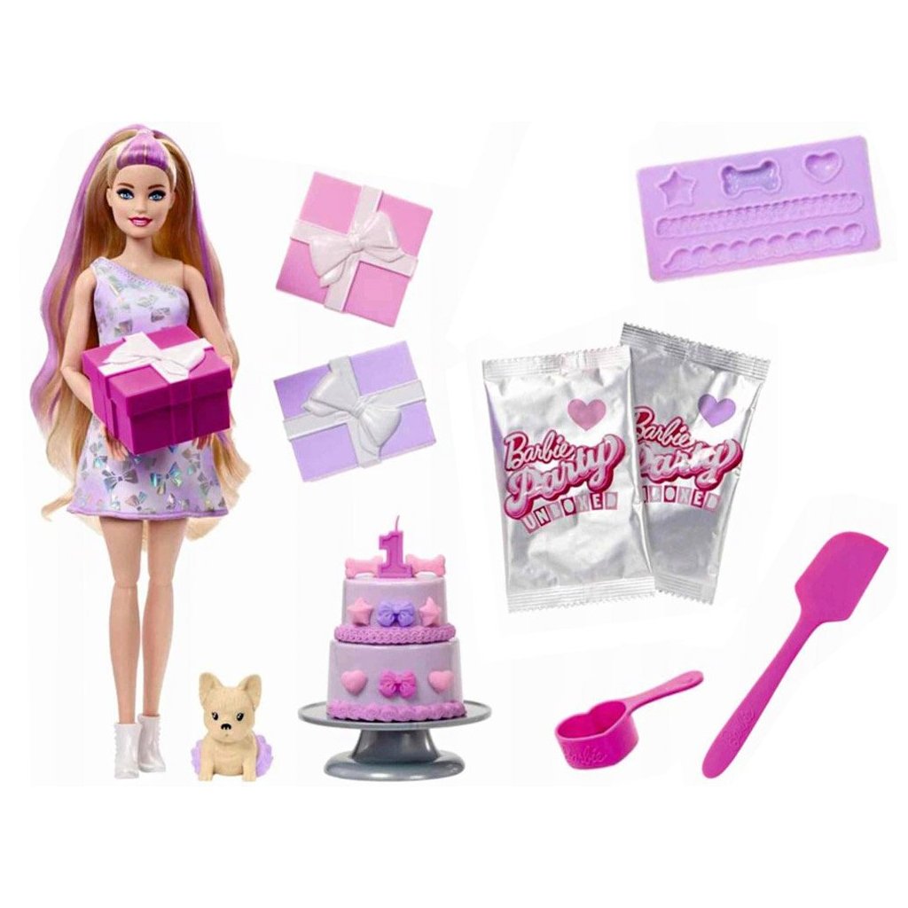 Sada Barbie® Party Unboxed – Party Surprises je ideálna pre deti, ktoré milujú prekvapenia, párty a kreatívne hry. Každá krabica je inšpirovaná darčekovou krabicou a obsahuje 10 vzrušujúcich prekvapení vrátane bábiky Barbie®, rozkošnej figúrky psa a doplnkov, ktoré vytvoria jedinečnú narodeninovú oslavu pre vášho domáceho miláčika.