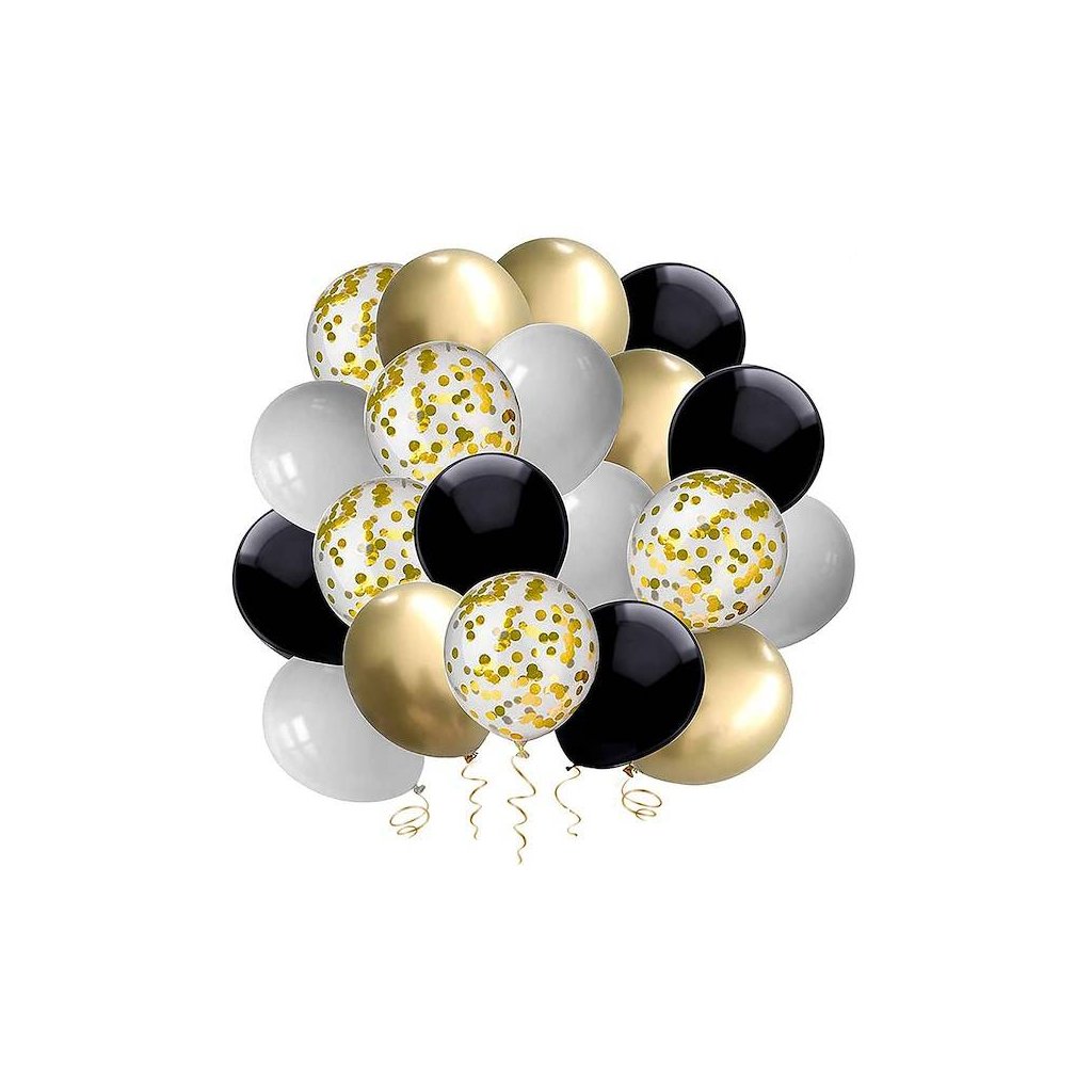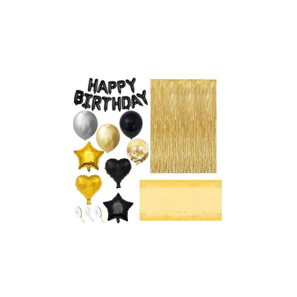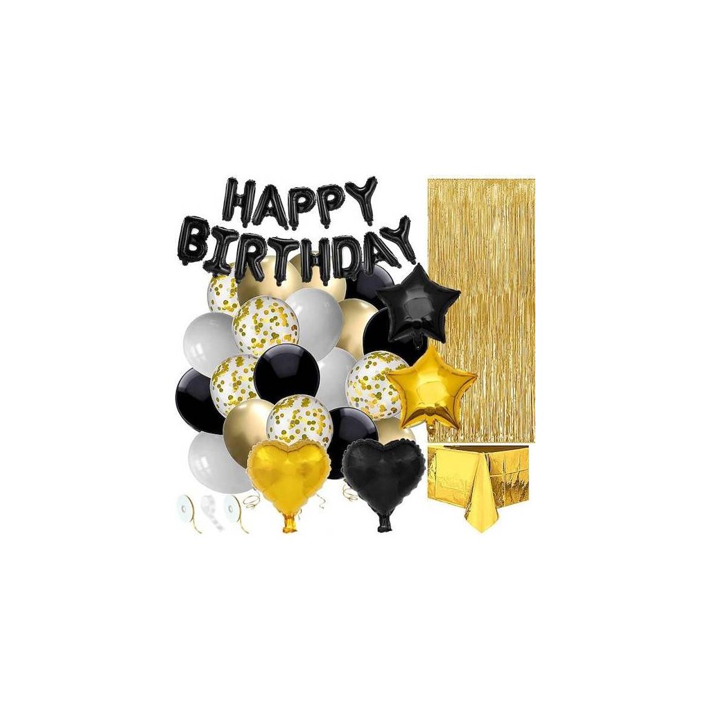 Balóny sú jednou z najzaujímavejších narodeninových dekorácií. Priťahujú pozornosť a dopĺňajú dekoráciu na večierkoch. Balóny, ktoré predstavujeme s čiernym nápisom: happy birthday, sú skutočným hitom sezóny. Vďaka nim zvýrazníte narodeninovú oslavu a dodáte oslave lesk. Sada obsahuje písmená tvoriace nápis, zlaté a čierne balónové srdiečka a hviezdičky a okrúhle farebné a priehľadné balóny s konfetami. Sada navyše obsahuje tubu na fúkanie balónov, zlaté stuhy, záves, tabuľu a rolku bodkového lepidla. Ak hľadáte originálny a lacný dekoračný produkt, štýlové balóny budú perfektné!