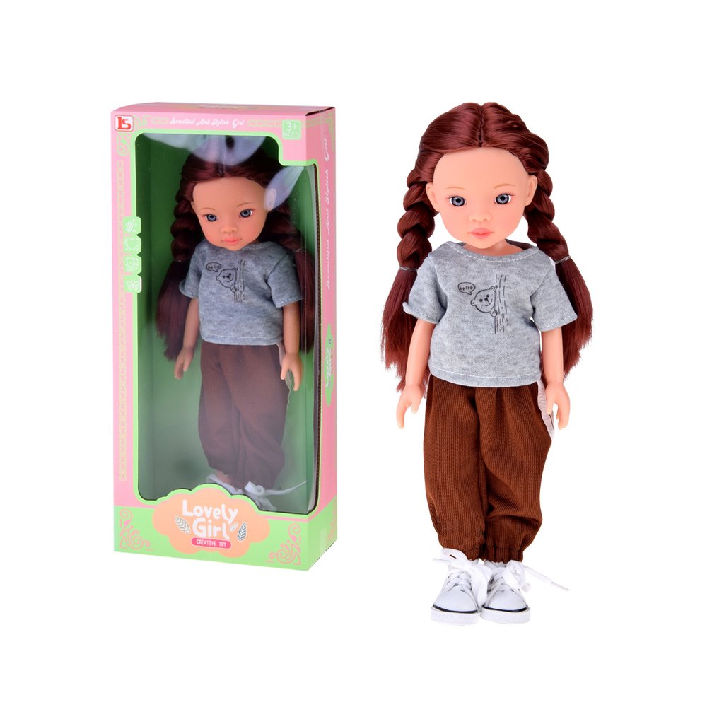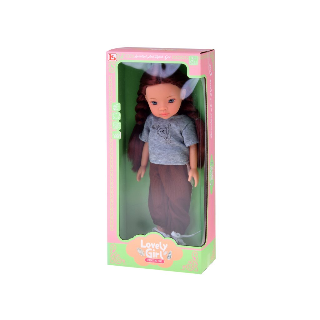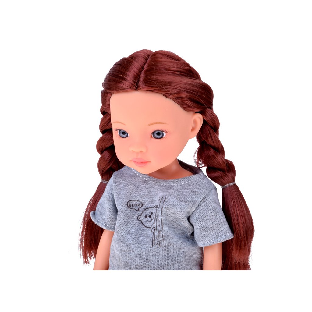 Bábika má dlhé, husté hnedé vlasy, ktoré je možné ľahko česať, zapletať a vytvárať z nich rôzne účesy. Je oblečená v pohodlnom športovom outfite – sivé tričko s potlačou, hnedé tepláky s bielymi pruhmi a biele šnurovacie tenisky. Kombinácia moderného vzhľadu a športového štýlu z nej robí skvelú spoločníčku na každodenné dobrodružstvá.