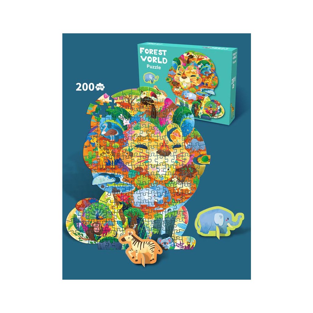Táto 200-dielna sada puzzle s motívom džungle je ideálna pre deti od 6 rokov , ktoré sa zaujímajú o svet zvierat a majú rady kreatívne puzzle. Po zložení všetkých dielikov sa objaví farebný obrázok leva , ktorý predstavuje typickú džungľu a jej zvieratá.