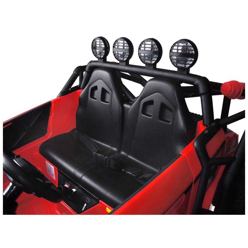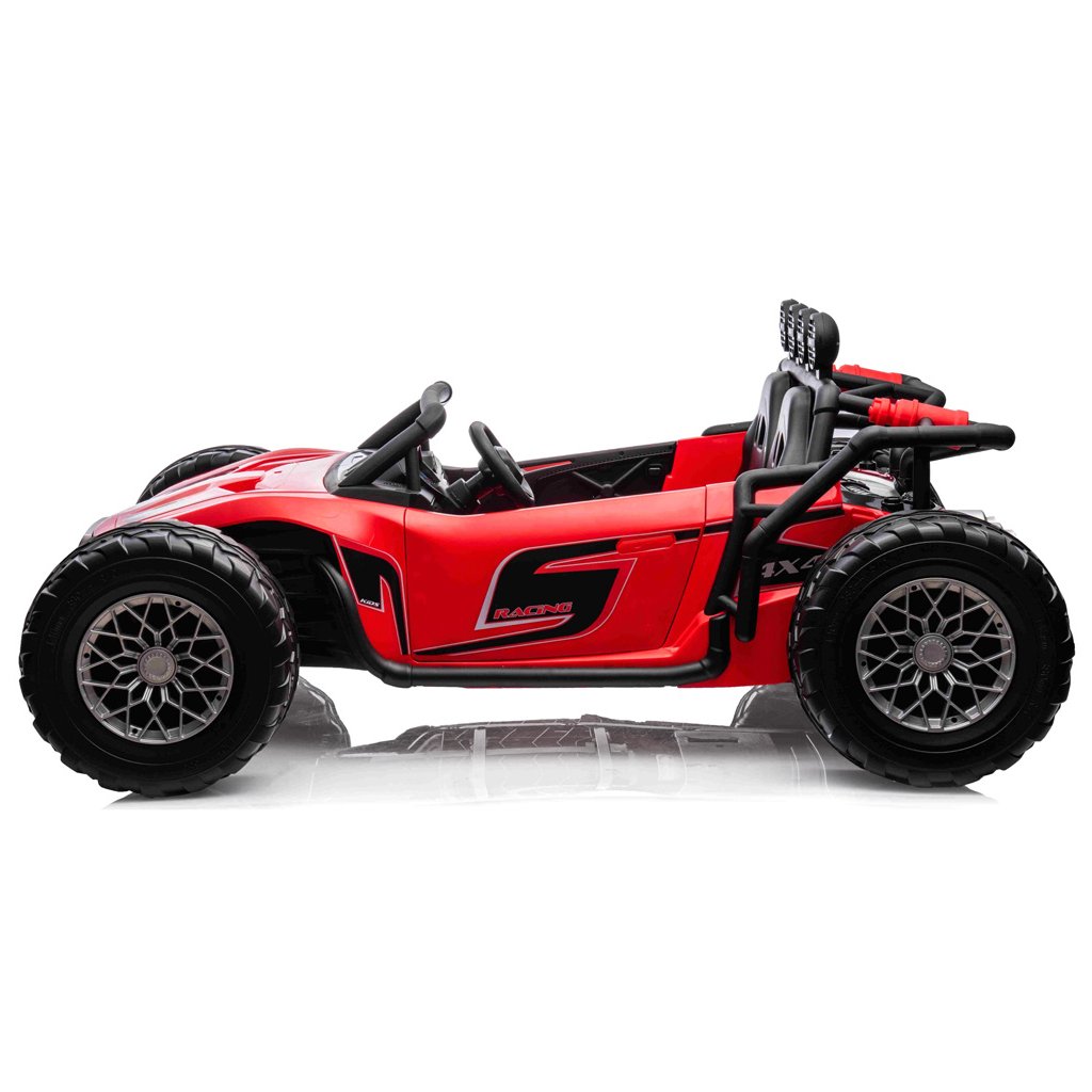 Športová bugina Buggy Racing Jokomisiada PA0281 je skvelé dvojmiestne terénne auto na batérie určené pre deti od 3 rokov. Toto vozidlo poskytuje skvelý zážitok z jazdy vďaka svojej robustnej konštrukcii a pohodlnému odpruženiu. Auto je vybavené dvoma silnými motormi (2x 24V 200W), ktoré umožňujú plynulú a bezpečnú jazdu aj v teréne. Rodičia môžu kontrolovať jazdu pomocou diaľkového ovládania na frekvencii 2,4 GHz, čo zaručuje bezpečnosť počas prvých jázd.