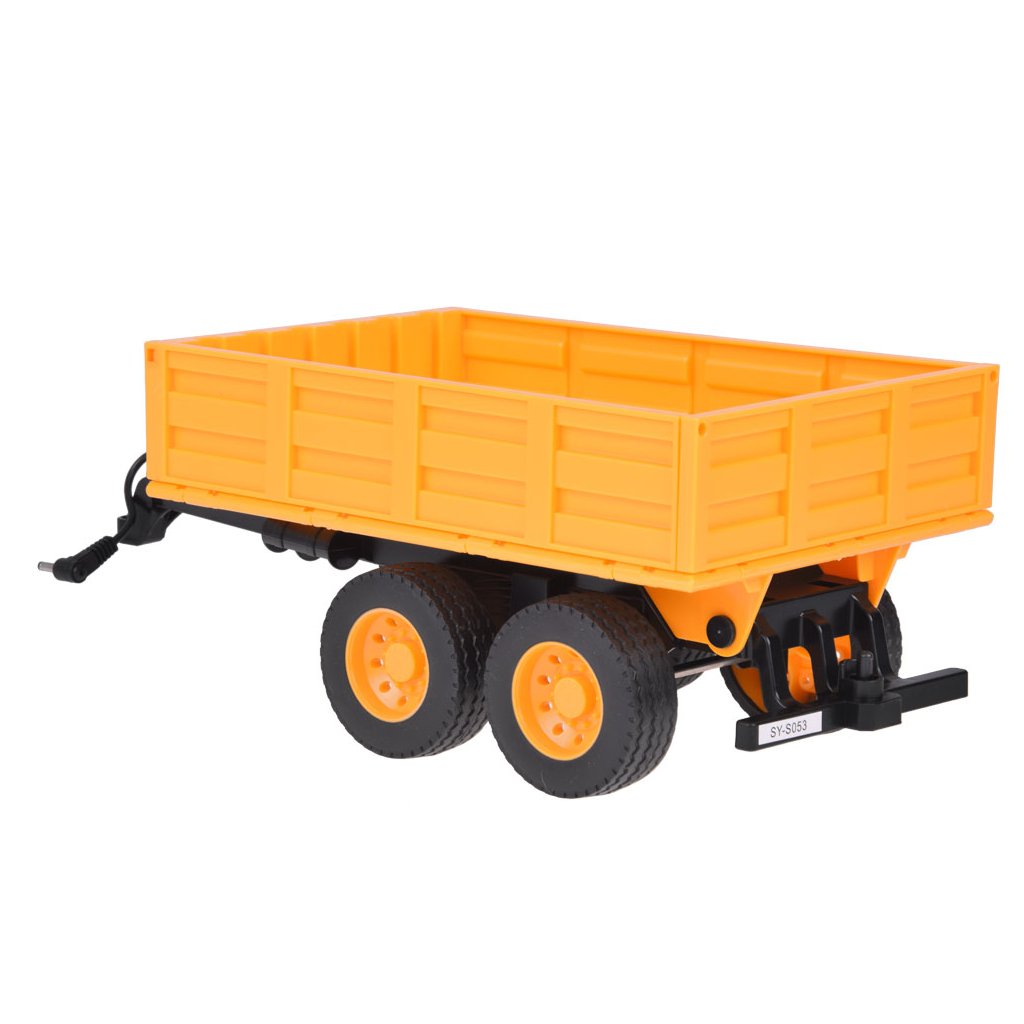 Automatické párovanie zabezpečí, že traktor a príves sa po zapnutí diaľkového ovládania okamžite spoja a sú pripravené na použitie. Funkcia sklápania prívesu umožňuje realistickú prepravu a vykladanie materiálu bez manuálneho zdvíhania. Bočnice prívesu sa dajú sklápateľne otvoriť pre prepravu väčších predmetov.