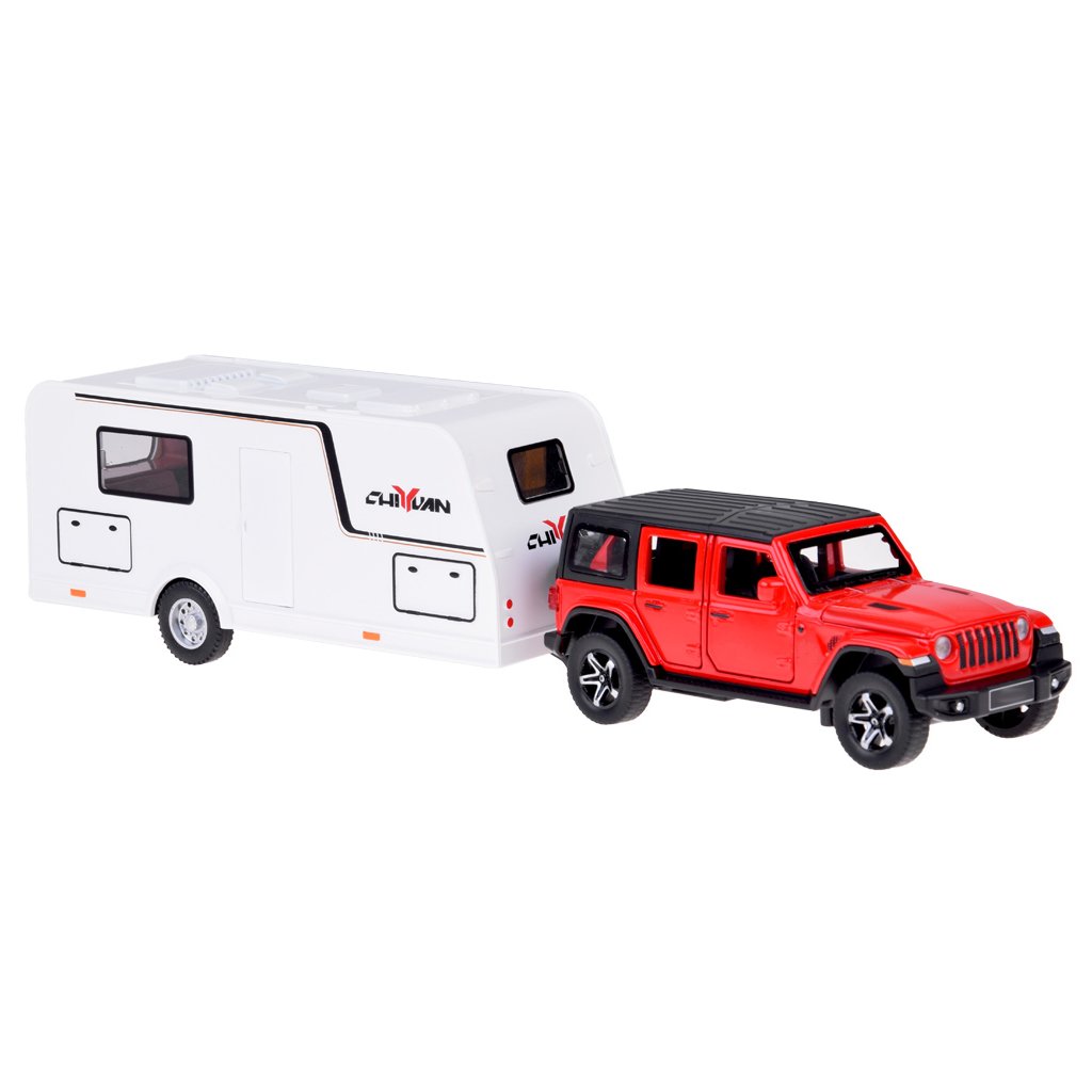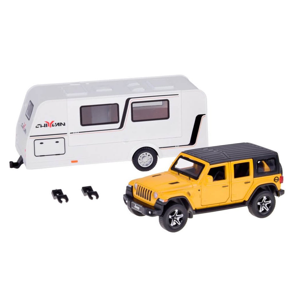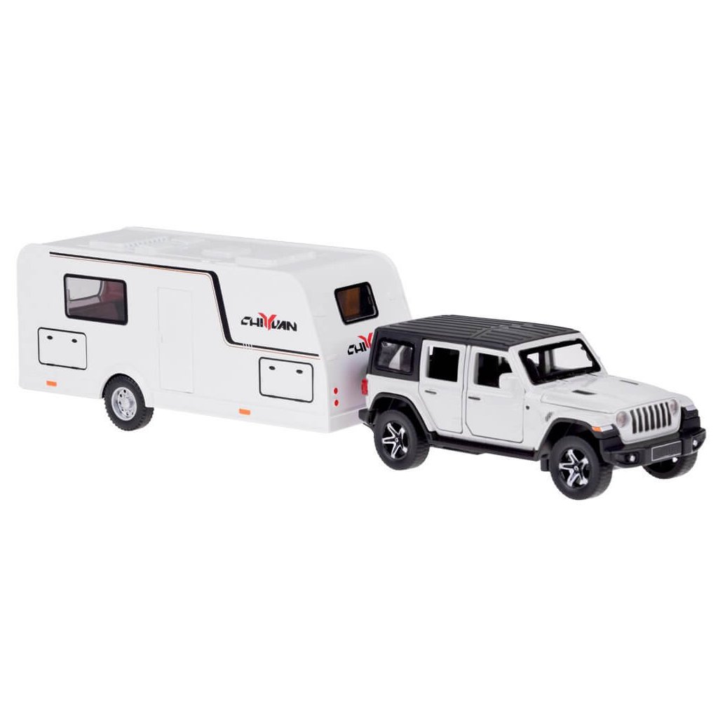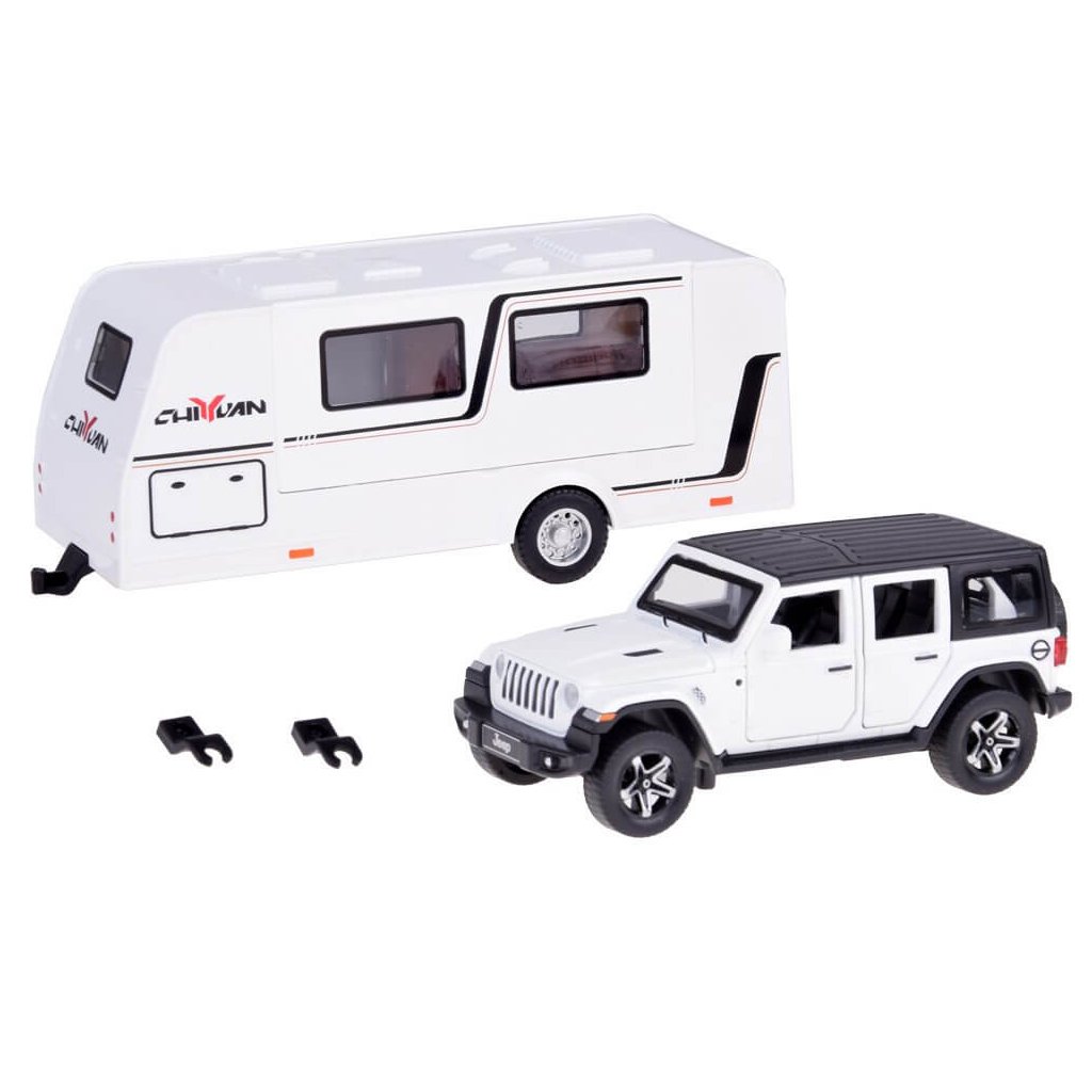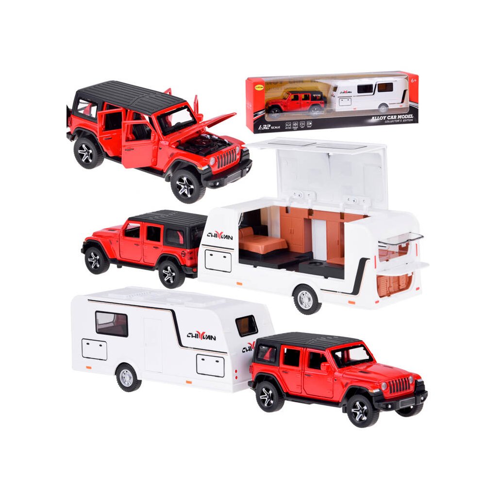 Toto terénne vozidlo s obytným prívesom je perfektnou hračkou na prepravu vášho dieťaťa do sveta prázdninových dobrodružstiev! Kovové terénne vozidlo je vyrobené s neuveriteľnou pozornosťou k detailom a svetlomety, ktoré sa rozsvietia počas jazdy, dodávajú jeho realistický vzhľad. Tento model v mierke 1:32 dokonale replikuje obľúbené SUV a kombinuje odolnosť s vysoko kvalitnou plastovou konštrukciou.