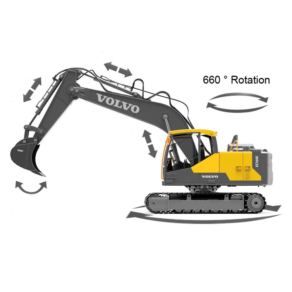 Tento detailne spracovaný bager VOLVO 3 v 1 v mierke 1:16 ponúka deťom realistický zážitok zo stavby a práce so stavebnou technikou. Ovláda sa pomocou ergonomického 2,4 GHz diaľkového ovládača, ktorý umožňuje plnú kontrolu nad jazdou aj pohybom ramena. Kabína sa môže otáčať až o 660°, lyžica sa plynulo zdvíha a spúšťa a celý model sa hýbe na gumených pásoch.