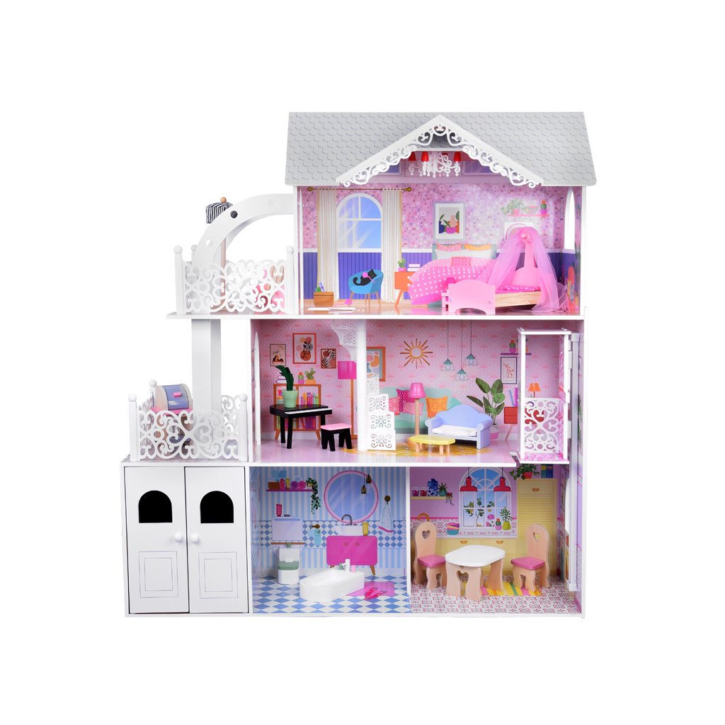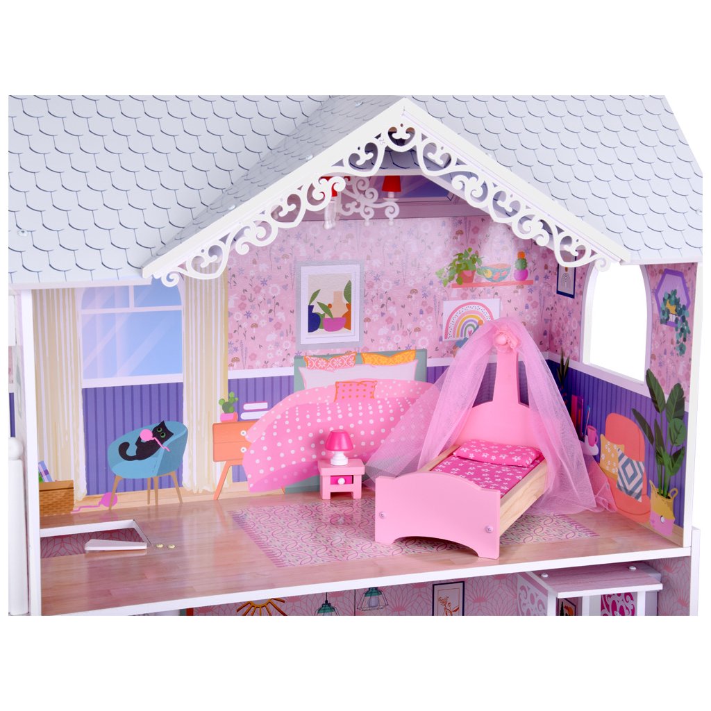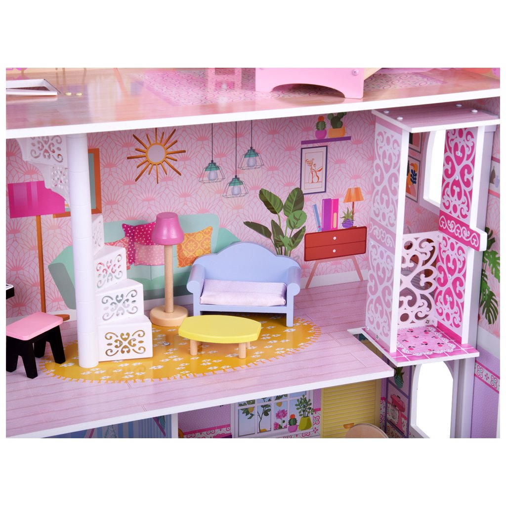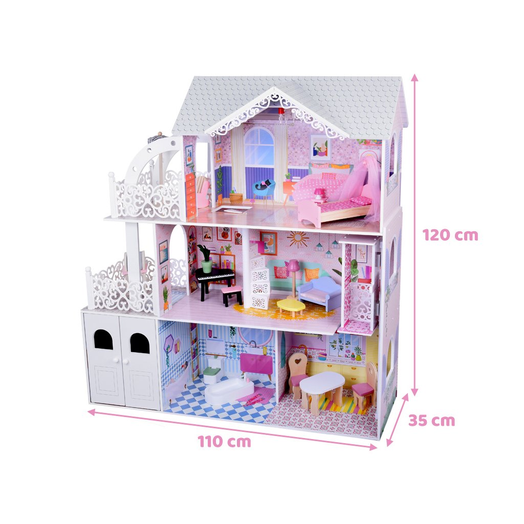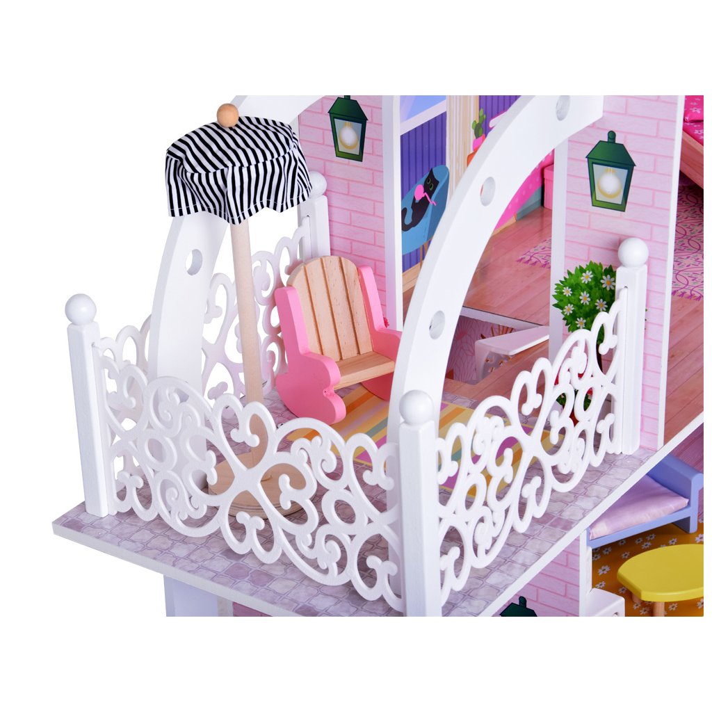 Tento luxusný drevený domček pre bábiky je nielen krásny na pohľad, ale aj praktický na hru. Vďaka funkčnému výťahu, dvom balkónom a priestrannej garáži poskytuje realistický herný zážitok. Deti si môžu domček zariadiť podľa seba a každý deň objavovať nové možnosti hry.