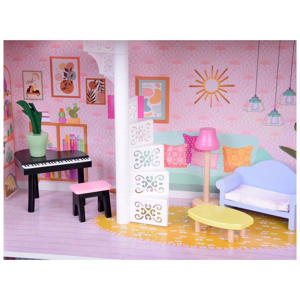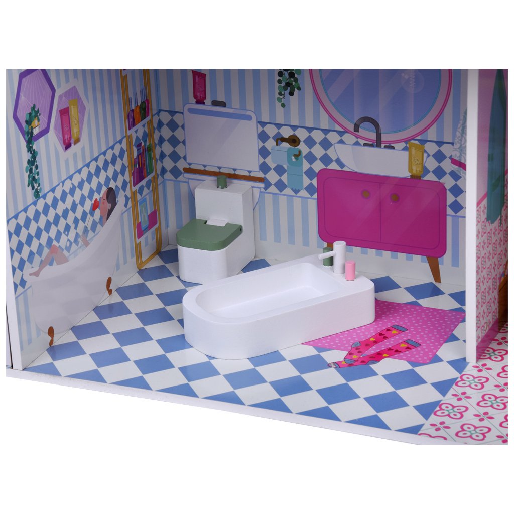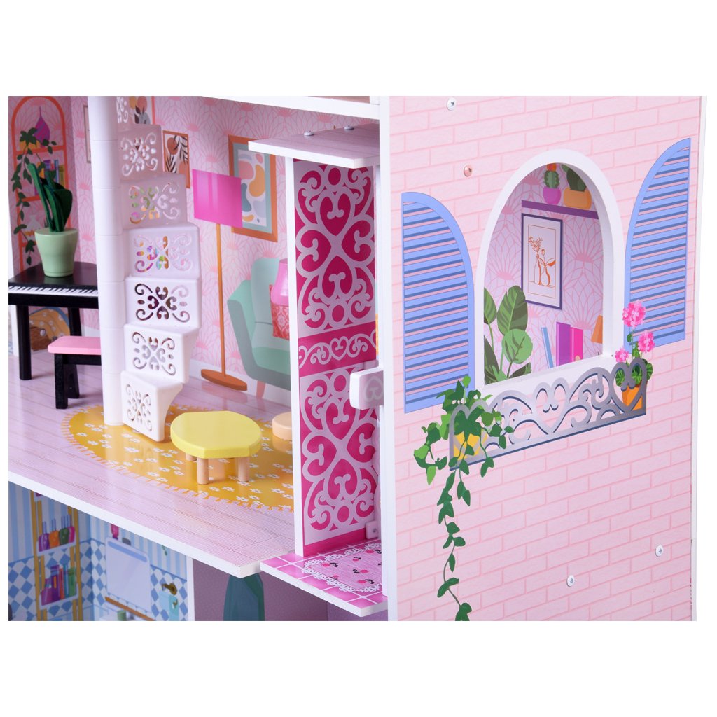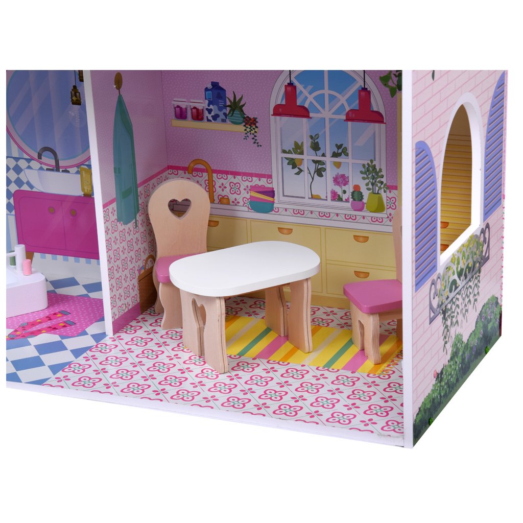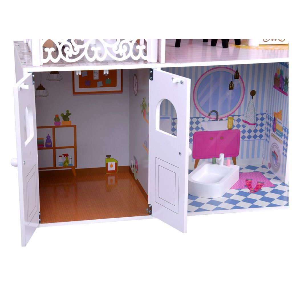Tento luxusný drevený domček pre bábiky je nielen krásny na pohľad, ale aj praktický na hru. Vďaka funkčnému výťahu, dvom balkónom a priestrannej garáži poskytuje realistický herný zážitok. Deti si môžu domček zariadiť podľa seba a každý deň objavovať nové možnosti hry.