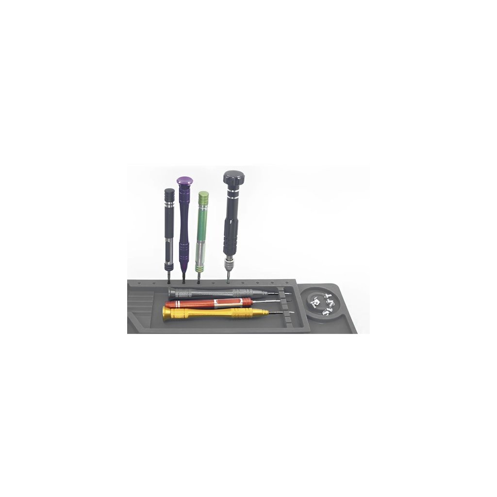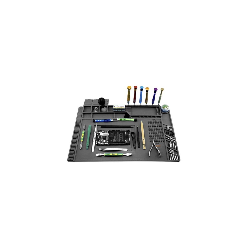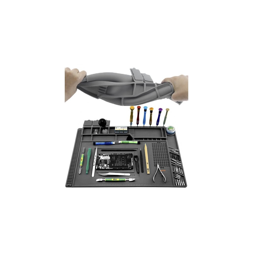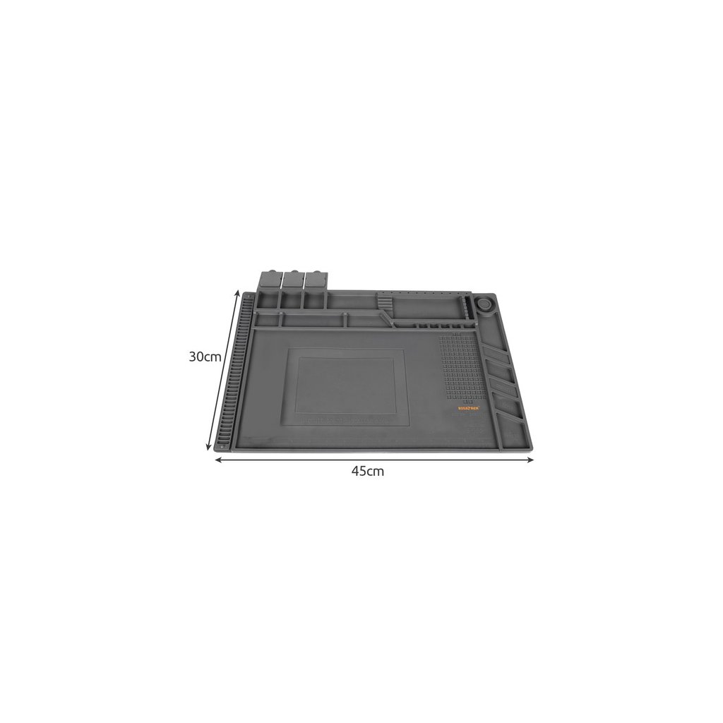 Táto multifunkčná podložka je ideálnym pomocníkom pre každého, kto vykonáva drobné opravy a prácu s elektronikou. Vďaka kvalitnému silikónovému materiálu a praktickým funkciám bude skvelým doplnkom každého pracovného stola.