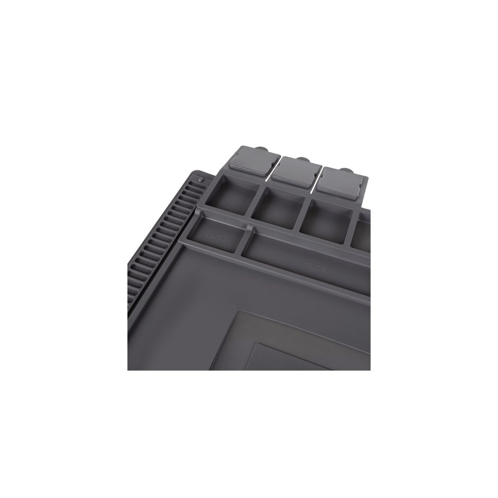 - Magnetické vrecká: Obsahuje 4 magnetické vrecká, ktoré udržia malé kovové súčiastky (napr. skrutky) pevne na mieste. Skrutky a drobné diely tak zostanú organizované, aj keď sa podložka pohne.