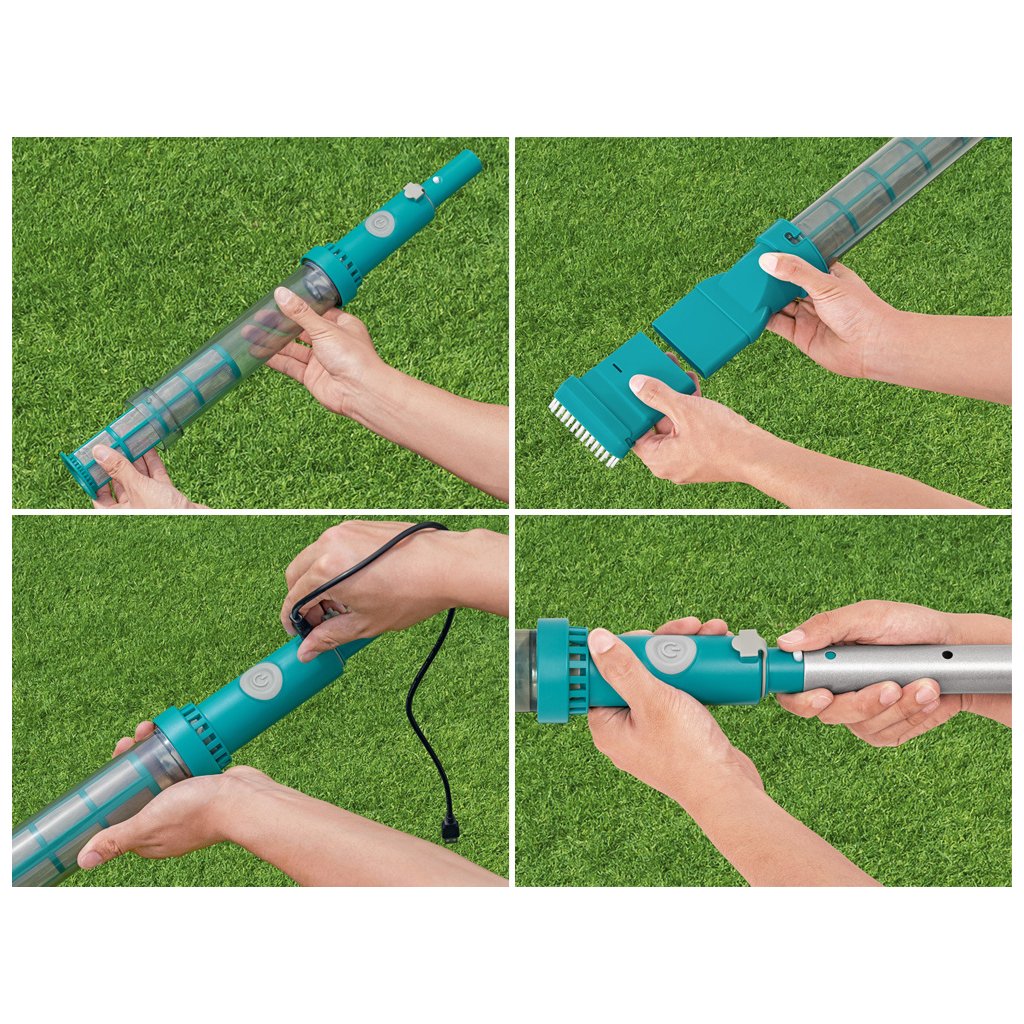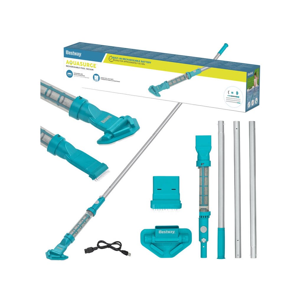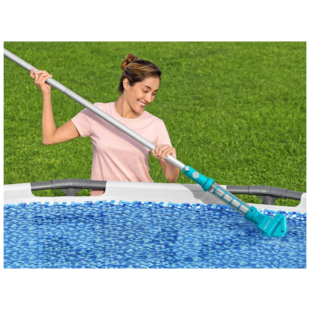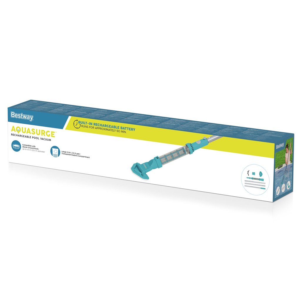 Zbavte sa starostí s udržiavaním bazéna v čistote s akumulátorovým vysávačom AquaSurge™ od Bestway. Súprava na čistenie bazéna vám pomôže udržať vodu čistú, takže si môžete byť istí, že vy aj vaše deti môžete v horúcich dňoch s istotou dýchať a ochladiť sa.