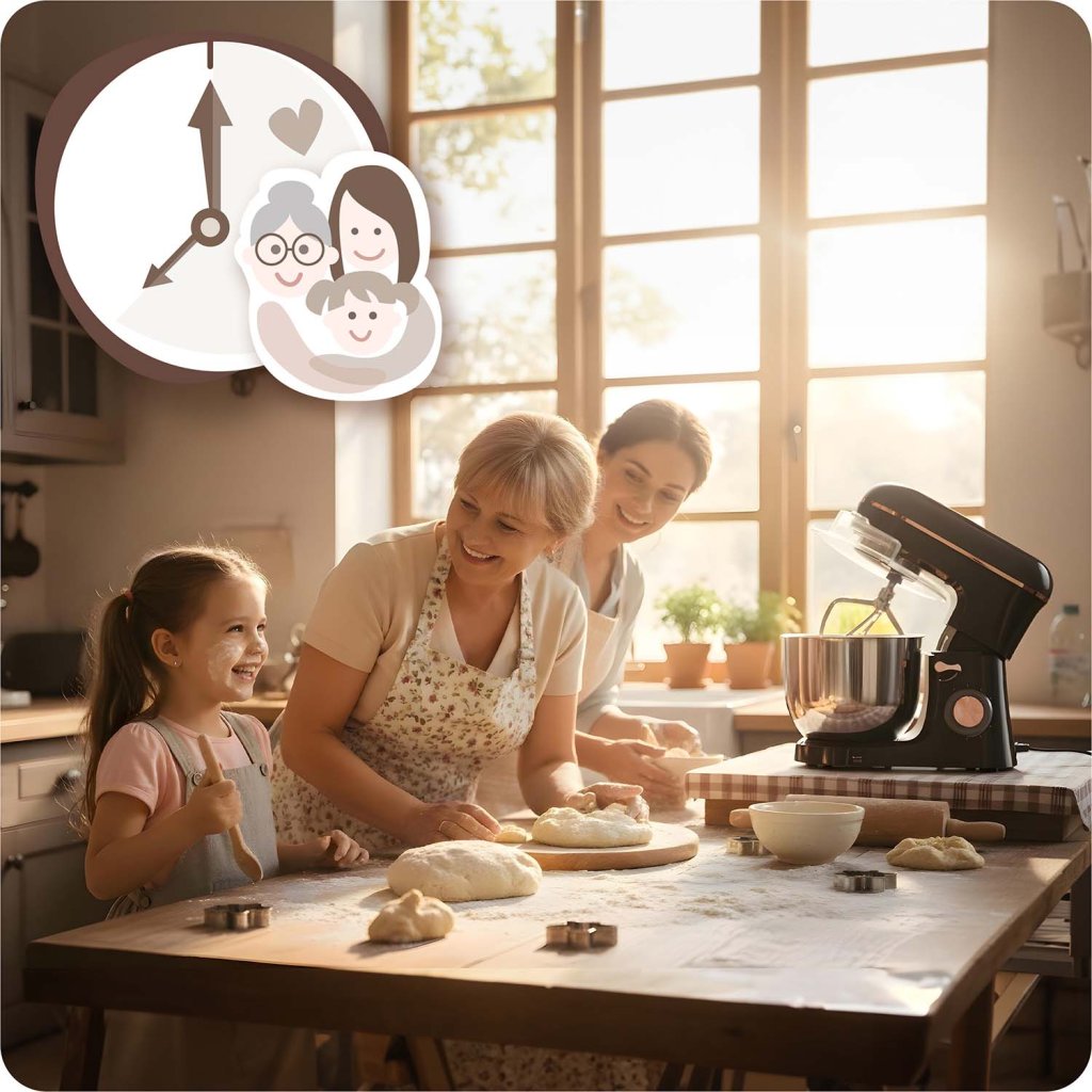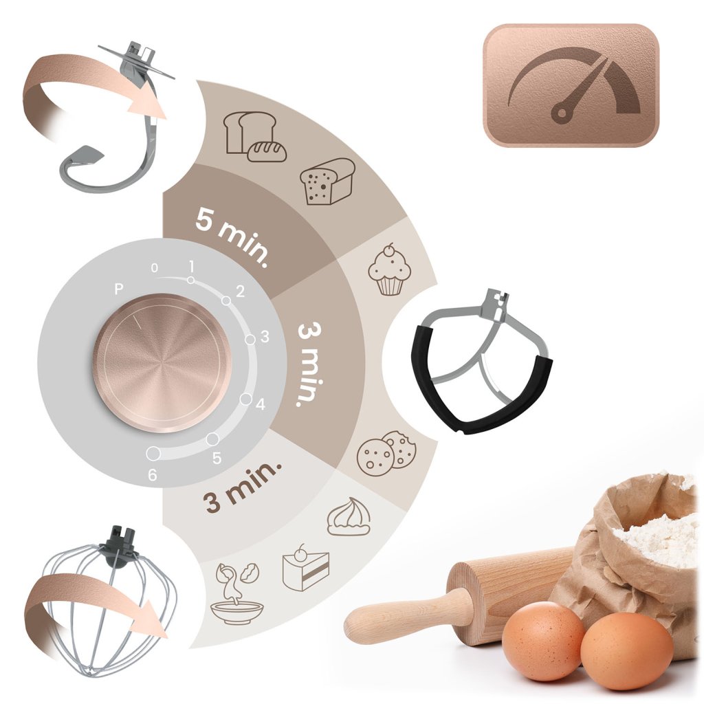 Robot využíva výkonný medený motor, ktorý je odolnejší voči preťaženiu a opotrebovaniu než bežné hliníkové motory. Zvládne husté cestá, kysnuté hmoty aj náročné recepty – bez prehrievania a bez straty výkonu.