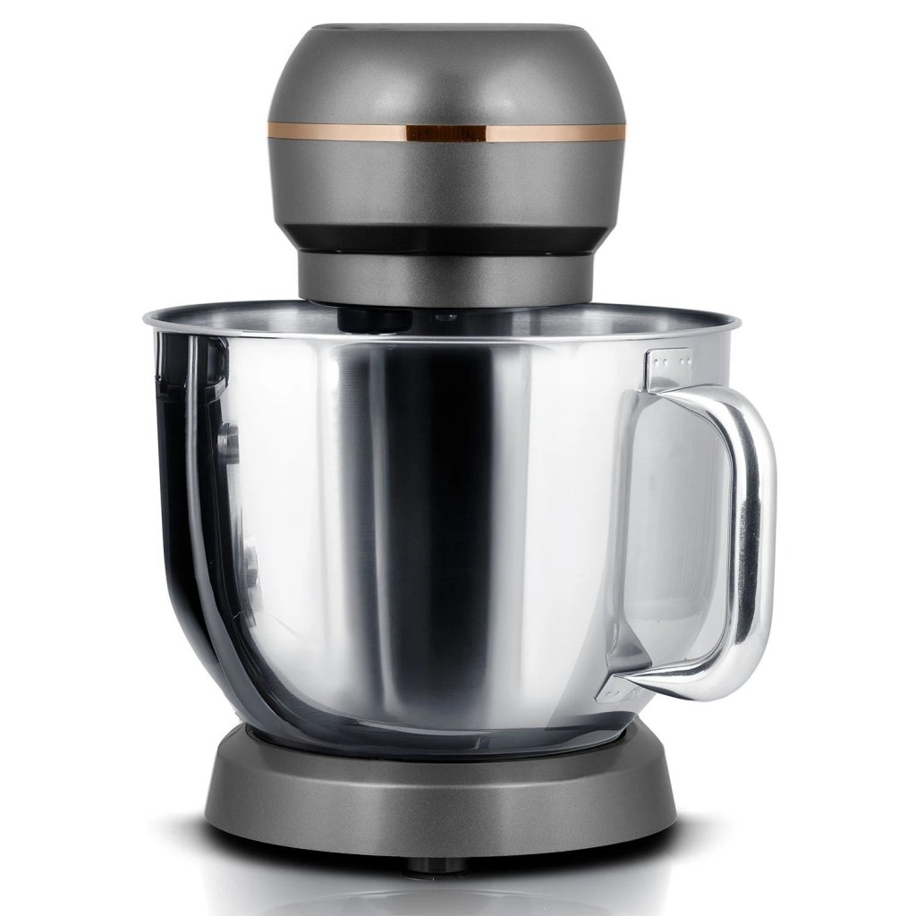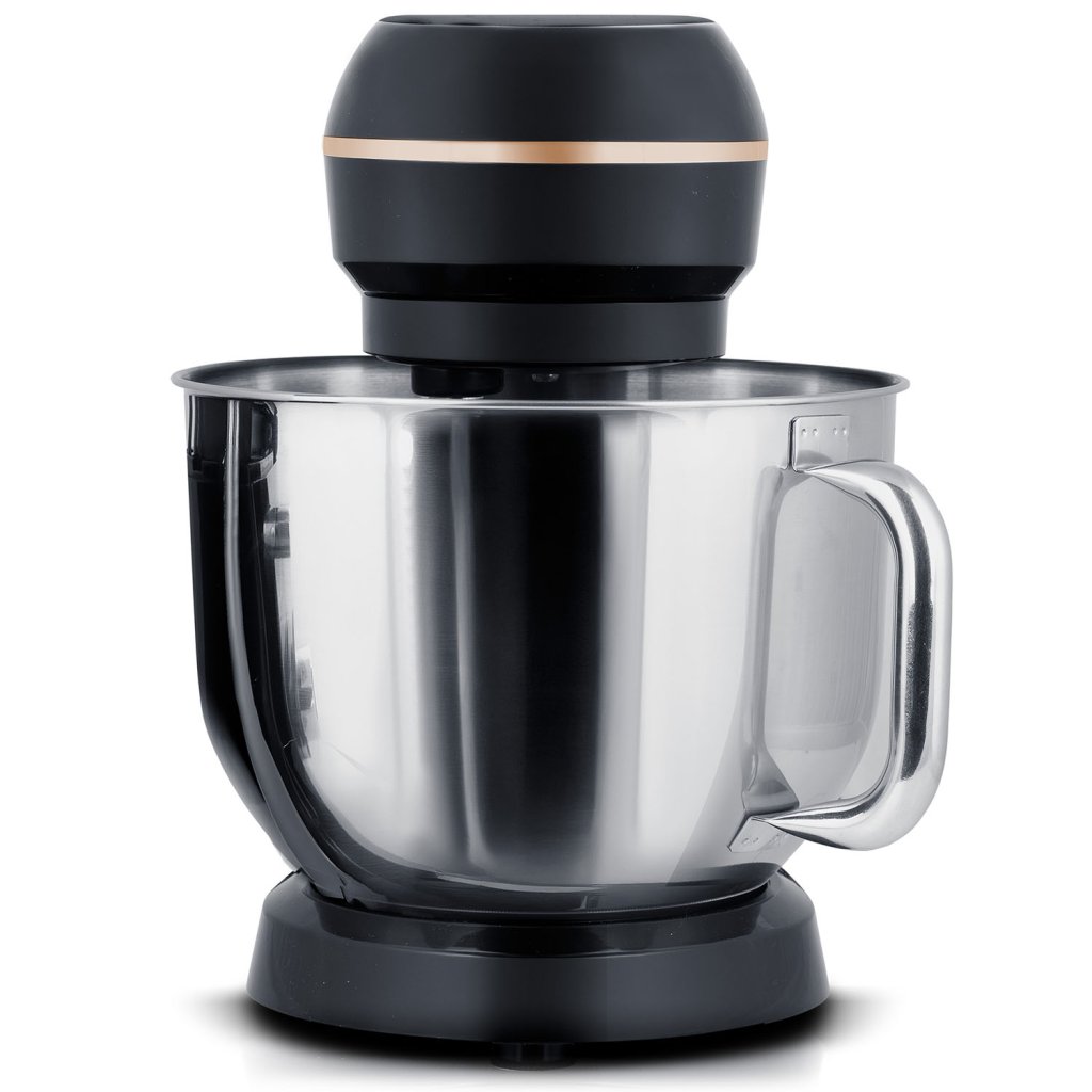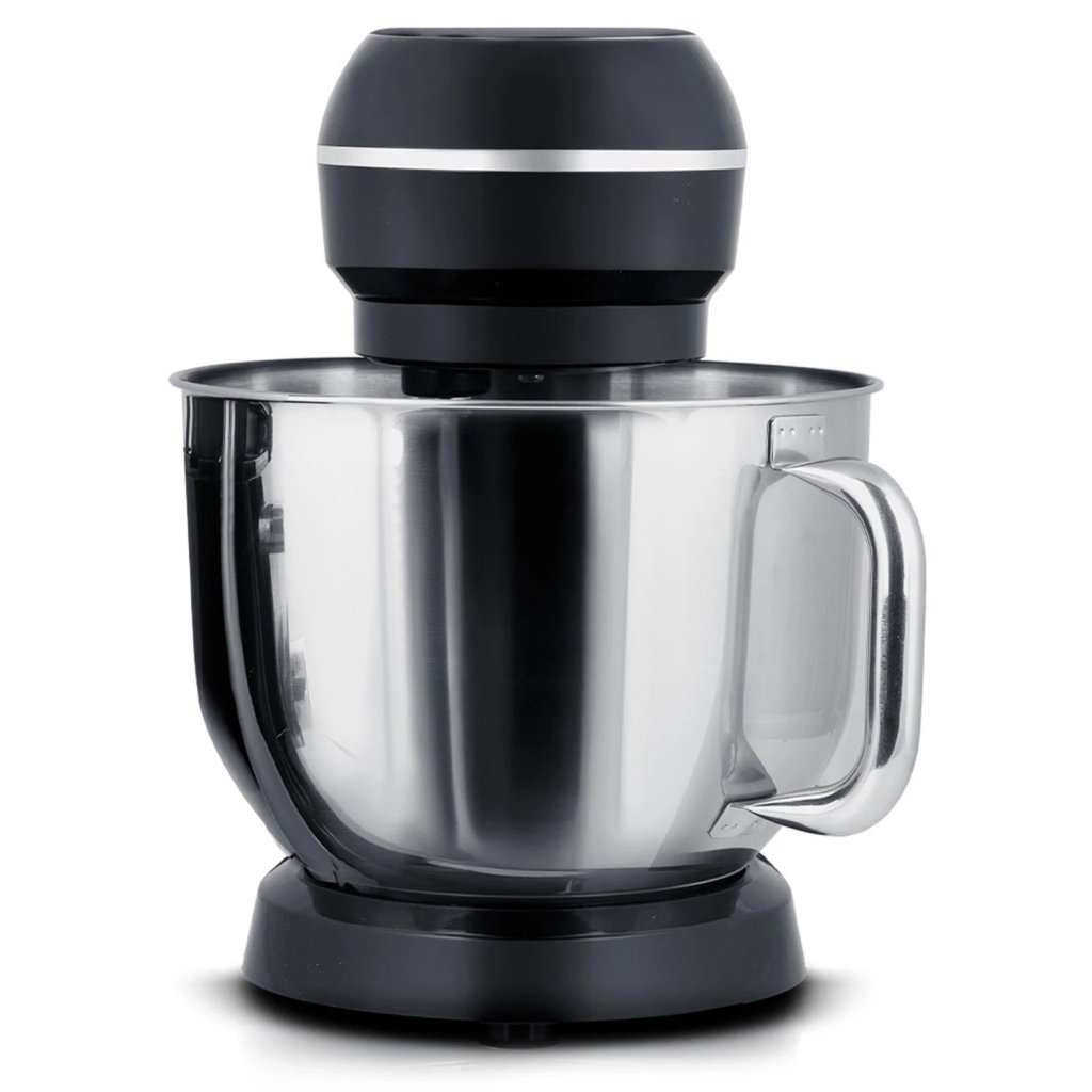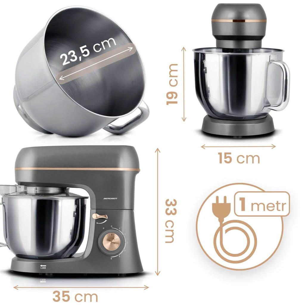 Odolná miska z nehrdzavejúcej ocele je hygienická, ľahko sa čistí a ponúka dostatočný objem aj pre väčšie množstvá cesta či krémov. Súčasťou je aj kryt proti rozstreku s otvorom na pridávanie surovín počas miešania.