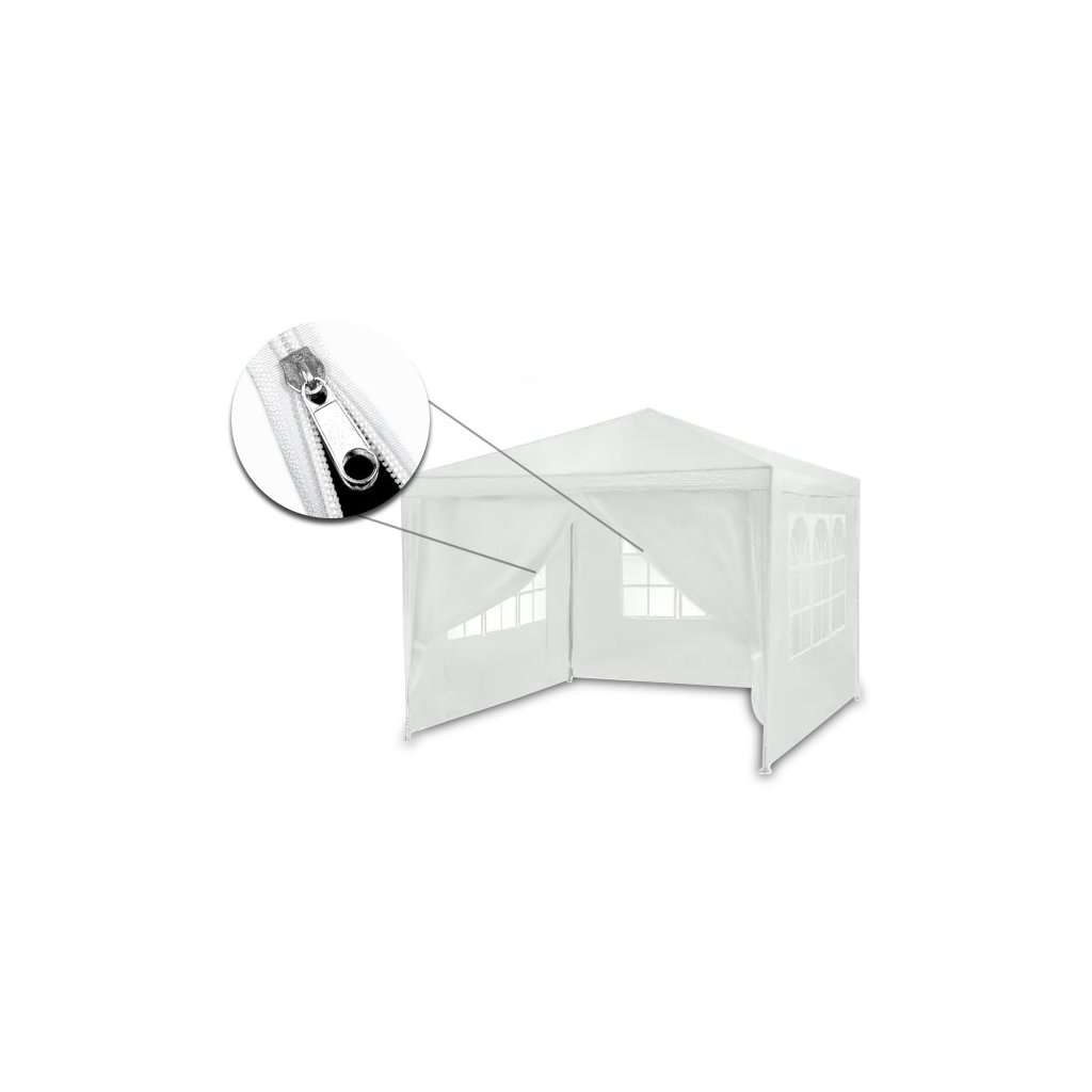 - Uzamykateľný vstup a bočné steny: Pavilón obsahuje 4 bočné steny, z ktorých jedna má vstup so zipsom, čo umožňuje ľahký prístup dovnútra aj bezpečné uzavretie priestoru.