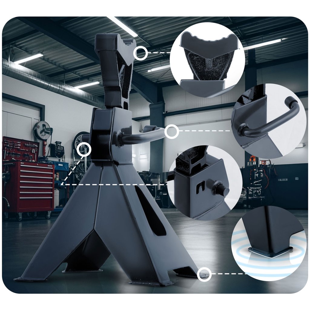 Dielenské podpery Humberg HM-384 sú určené na bezpečné podopretie vozidla po jeho zdvihnutí zdvihákom. Ideálne pre údržbu podvozka, výmenu kolies, opravy bŕzd alebo akúkoľvek prácu pod autom. Robustná oceľová konštrukcia zabezpečuje vysokú stabilitu a dlhú životnosť.
