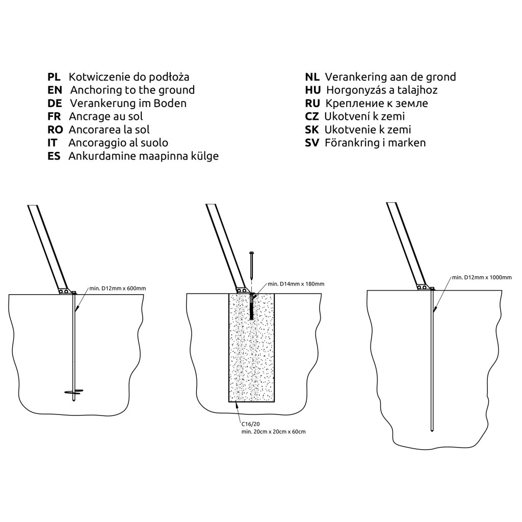 Možnosť ukotvenia rámu do zeme pre vyššiu stabilitu (kotvy nie sú súčasťou balenia).