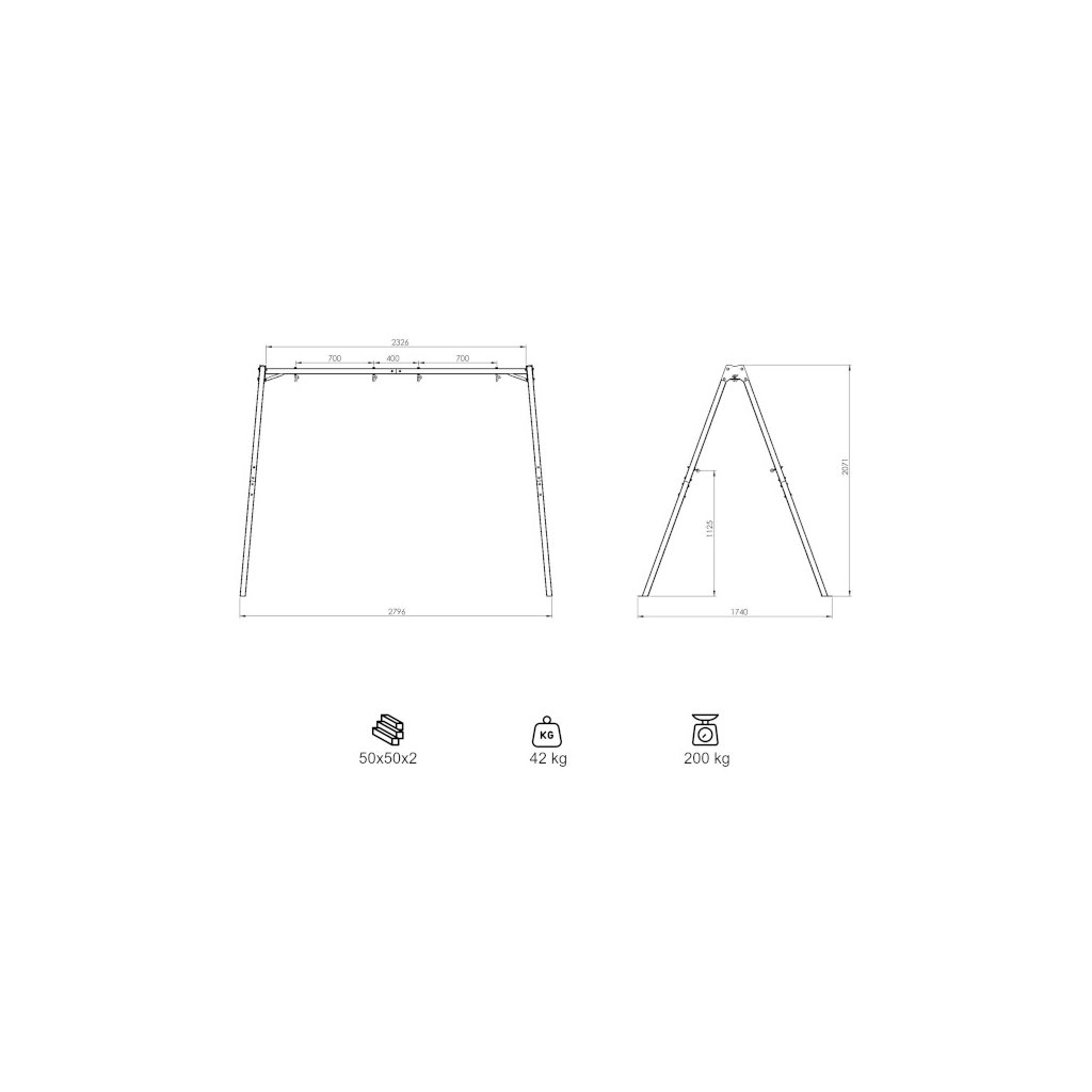 Konštrukcia pre záhradnú hojdačku MARBO MO-002 je robustný a spoľahlivý oceľový rám určený na zavesenie rôznych typov závesných príslušenstiev, ako sú hojdačky, hojdacie siete, hamaky či športové zariadenia. Tu je stručný prehľad kľúčových vlastností a špecifikácií: