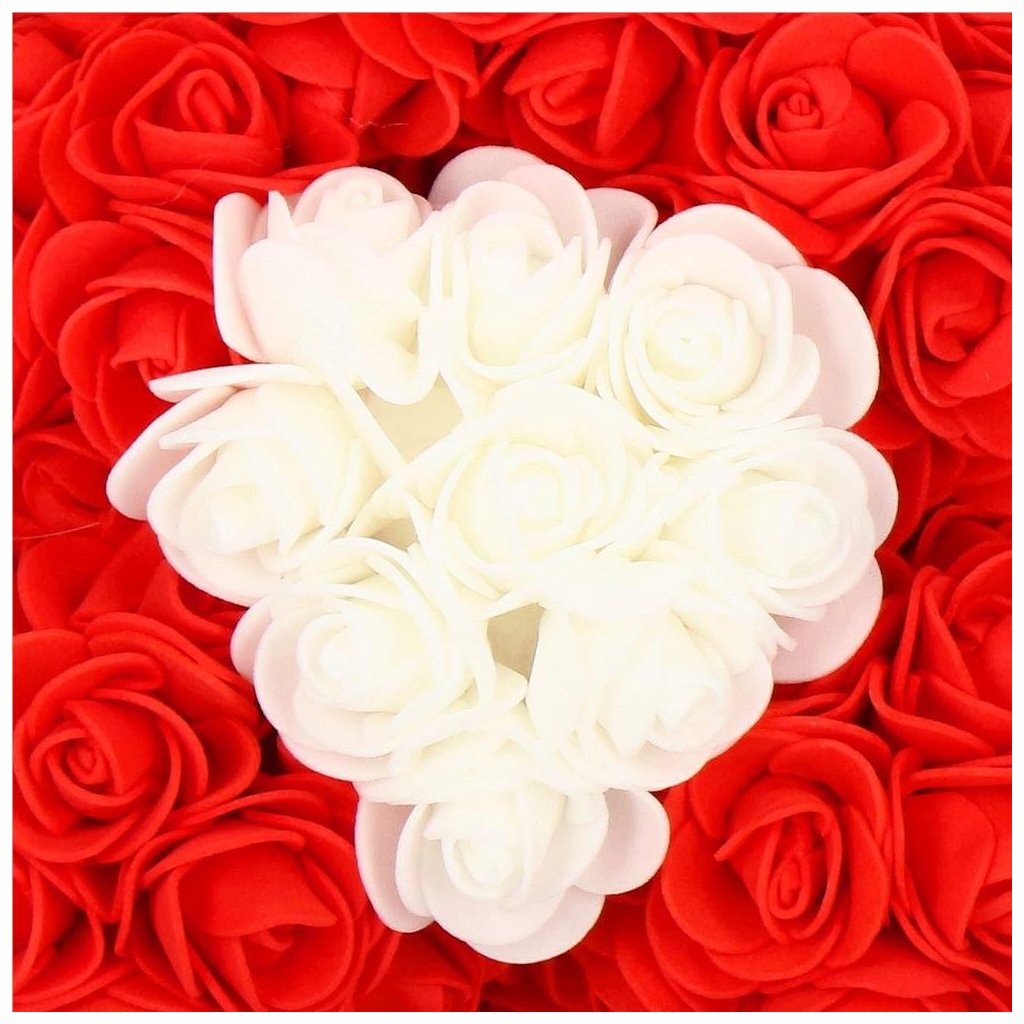Medvedík z ružových lupeňov, 25 cm – červený s bielym srdcom