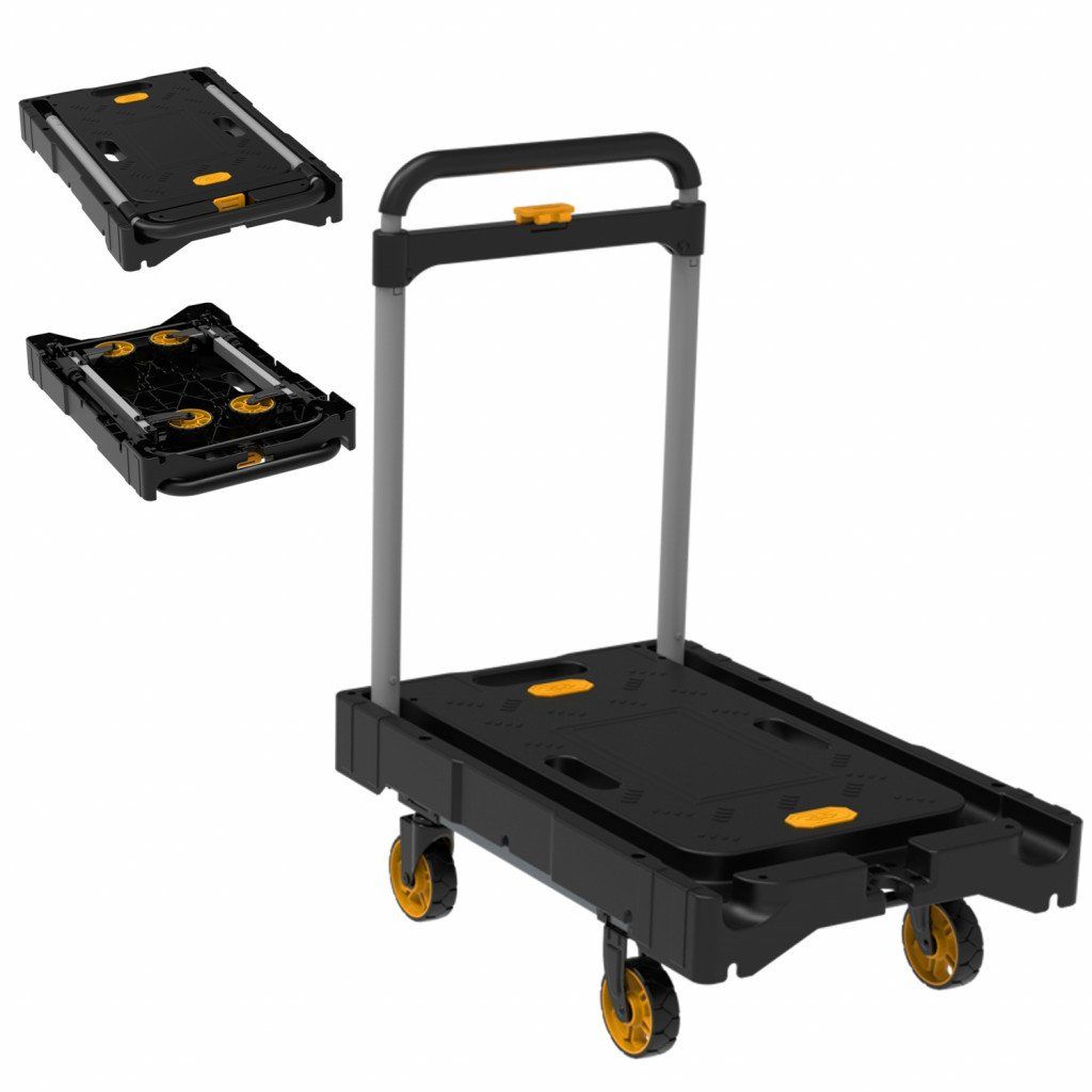 Robustná plošina a stabilná rukoväť zabezpečujú istotu pri transporte, zatiaľ čo kvalitné kolieska z termoplastickej gumy (TPR) umožňujú tichý a plynulý pohyb aj na menej ideálnom povrchu. Skladací mechanizmus zvyšuje praktickosť a uľahčuje skladovanie.