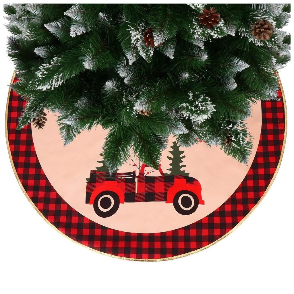 Vianočná podložka pod stromček 91 cm – červená s autíčkom (CA0793)