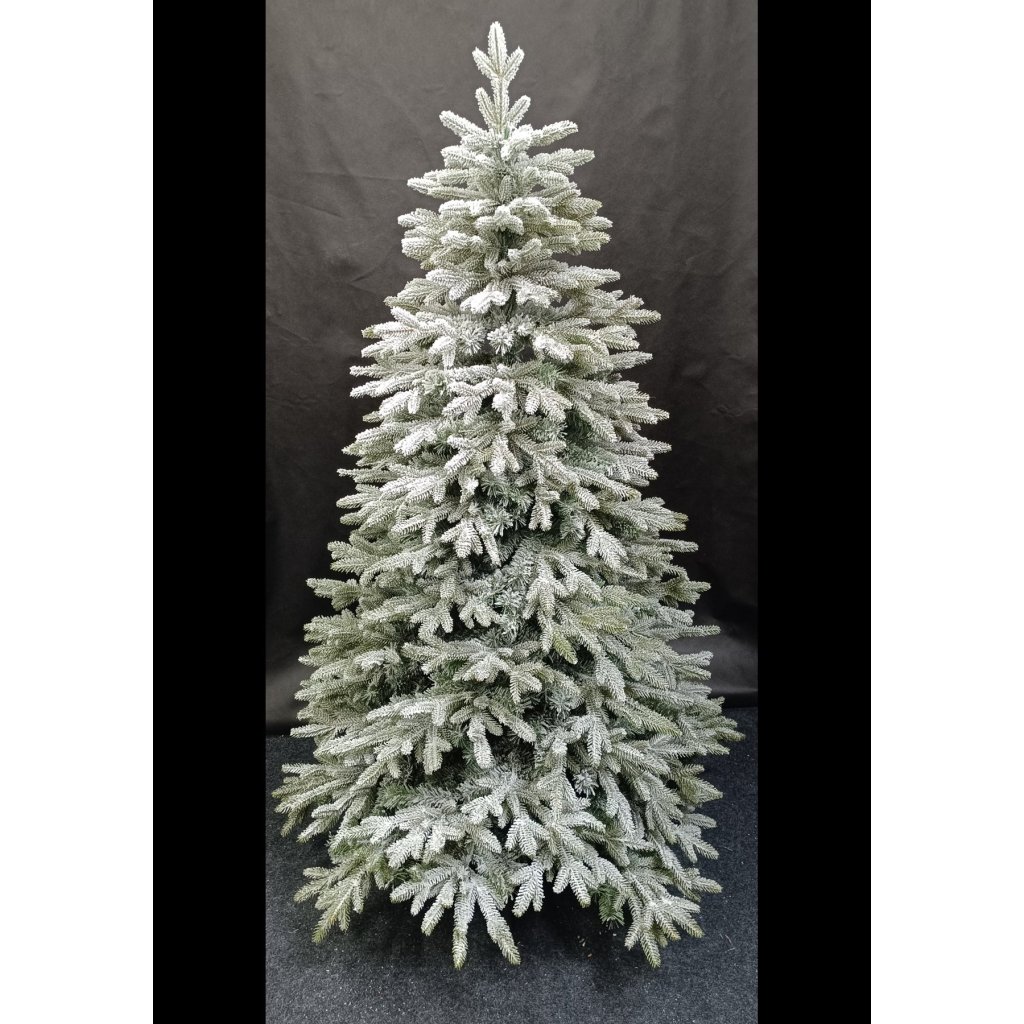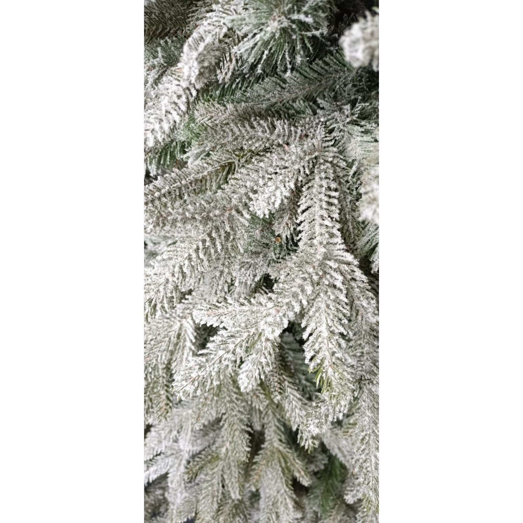 Jemný matný zasnežený efekt na konároch ešte viac zvýrazňuje eleganciu stromčeka a dodáva mu zimný, harmonický charakter.