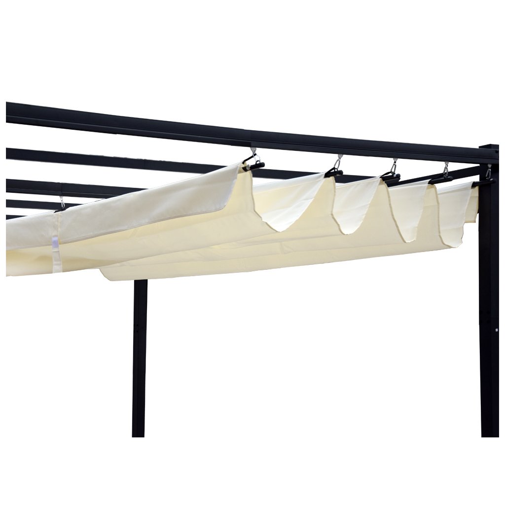 S rozmermi 3 × 3 × 2,4 m poskytuje pergola dostatok priestoru pre záhradné zostavy, vírivku, jedálenský stôl či ležadlá. Jej výška zaručuje pohodlie aj pre vyšších používateľov bez obmedzenia priestoru nad hlavou. Antracitová oceľová konštrukcia pôsobí moderne a elegantne, zatiaľ čo béžová vodotesná strecha vytvára príjemný kontrast a nádych letného luxusu.