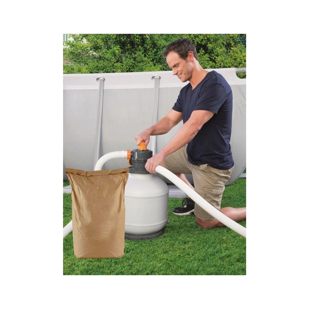 Tento typ piesku je univerzálne kompatibilný so všetkými bežnými bazénovými pieskovými filtráciami vrátane značiek ako Bestway, Intex, Marimex, Gre, Mountfield a ďalších. Stačí len nasypať odporúčané množstvo podľa typu filtrácie a môžete si užívať dlhšie intervaly medzi čistením a kvalitnú filtráciu bez zápachu a zákalu vody.